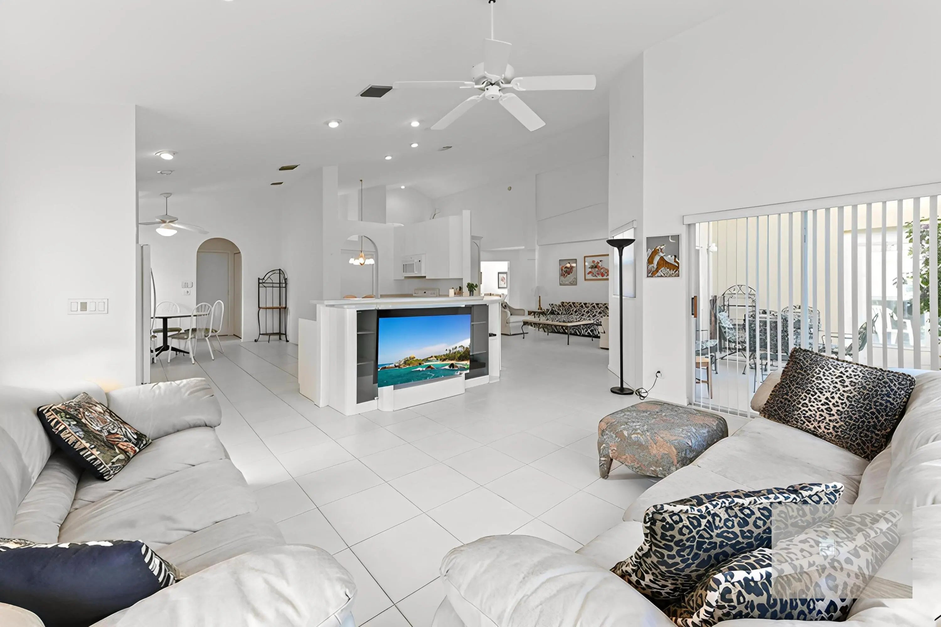Welcome to 7351 Sterling Falls Lane W, your ideal home in the vibrant 55+ community of Lakeridge Falls.This spacious 3-bedroom, 2.5-bath single-family home offers comfortable living in a beautifully maintained, manned-gated community. Enjoy the Florida lifestyle from your large covered and screened-in Florida room, perfect for relaxing or entertaining year-round. Inside, you'll find a bright, open layout designed for both style and convenience. The vaulted ceilings and primary bedroom's walk in closet provide an additional layer of luxury to this already well maintained home. Beautiful ceramic tile is featured throughout the home.