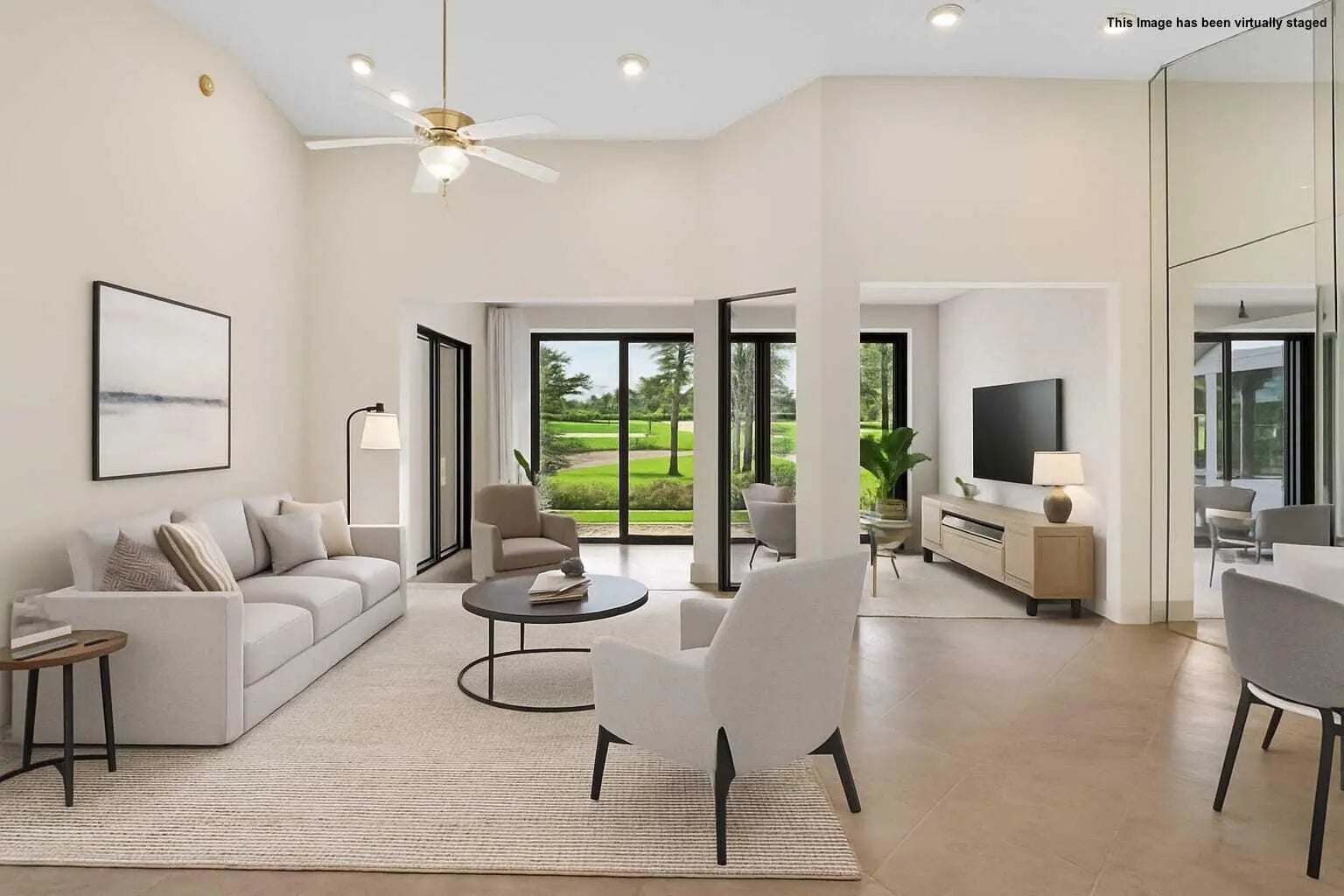 Charming 3 bedroom 2 bath villa on a quiet cul-de-sac. Stunning views of the lake and golf course views overlooking the fifth green. Thoughtfully maintained and move-in ready. This home features a new roof (2022), newer stainless steel appliances and granite countertops that beautifully complement this open spacious kitchen. Diagonal tile flooring flows through the main living areas, creating a bright and open feel, while the living room- dining room and lanai offer space for entertaining. Step outside to enjoy professional landscaped grounds and serene golf course and lake scenery. Complete with accordion shutters for full storm protection for peace of mind. Aberdeen is a mandatory membership country club. Please inquire club direct for updated fees.