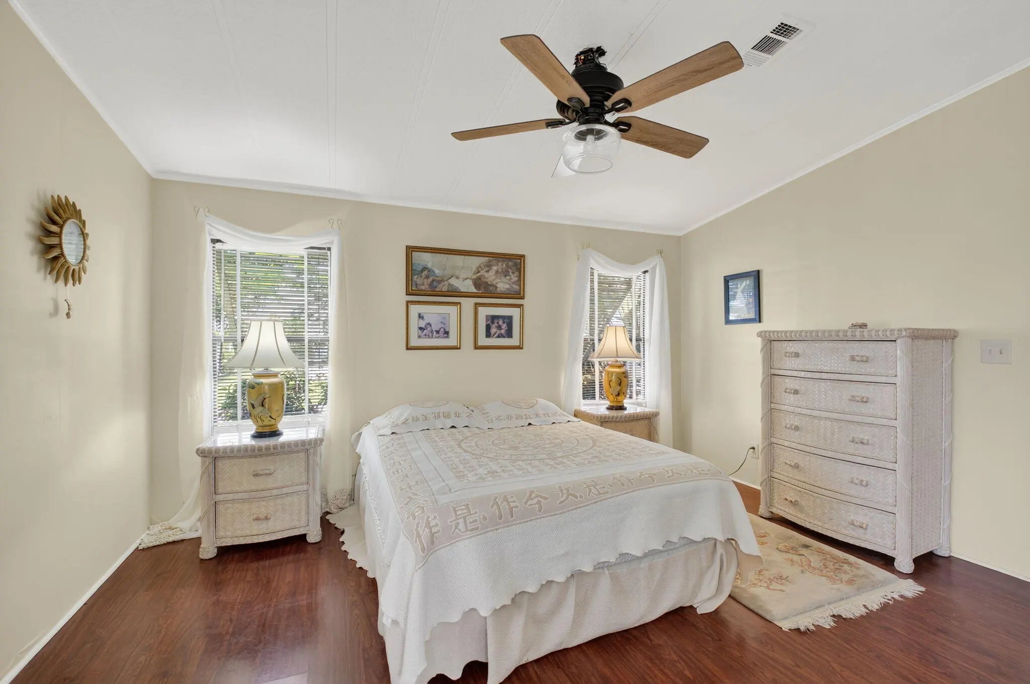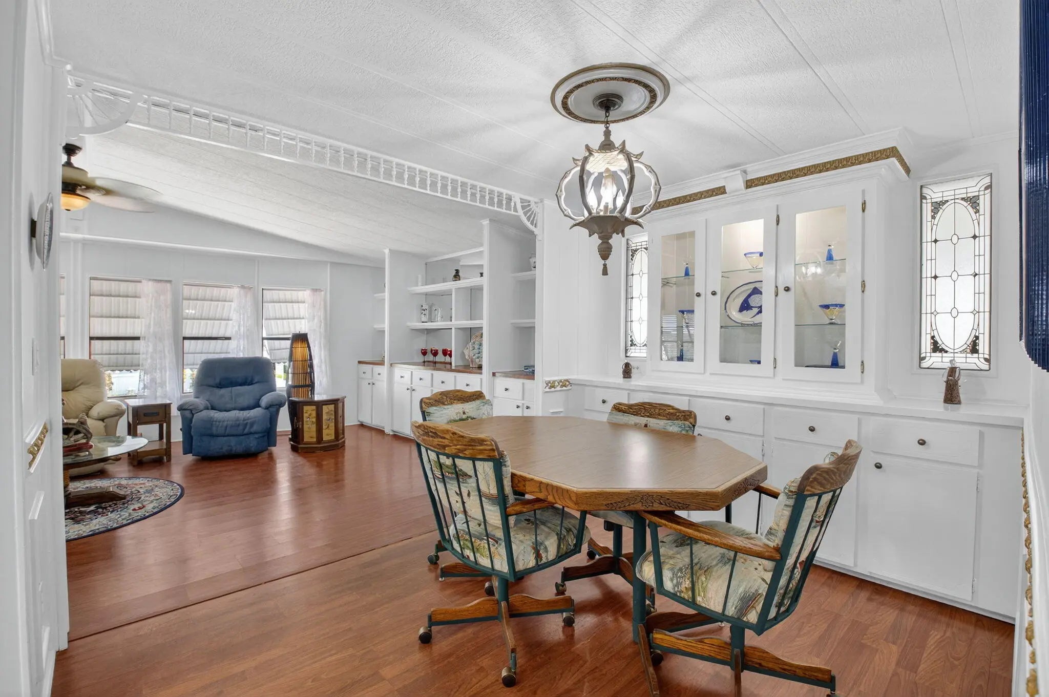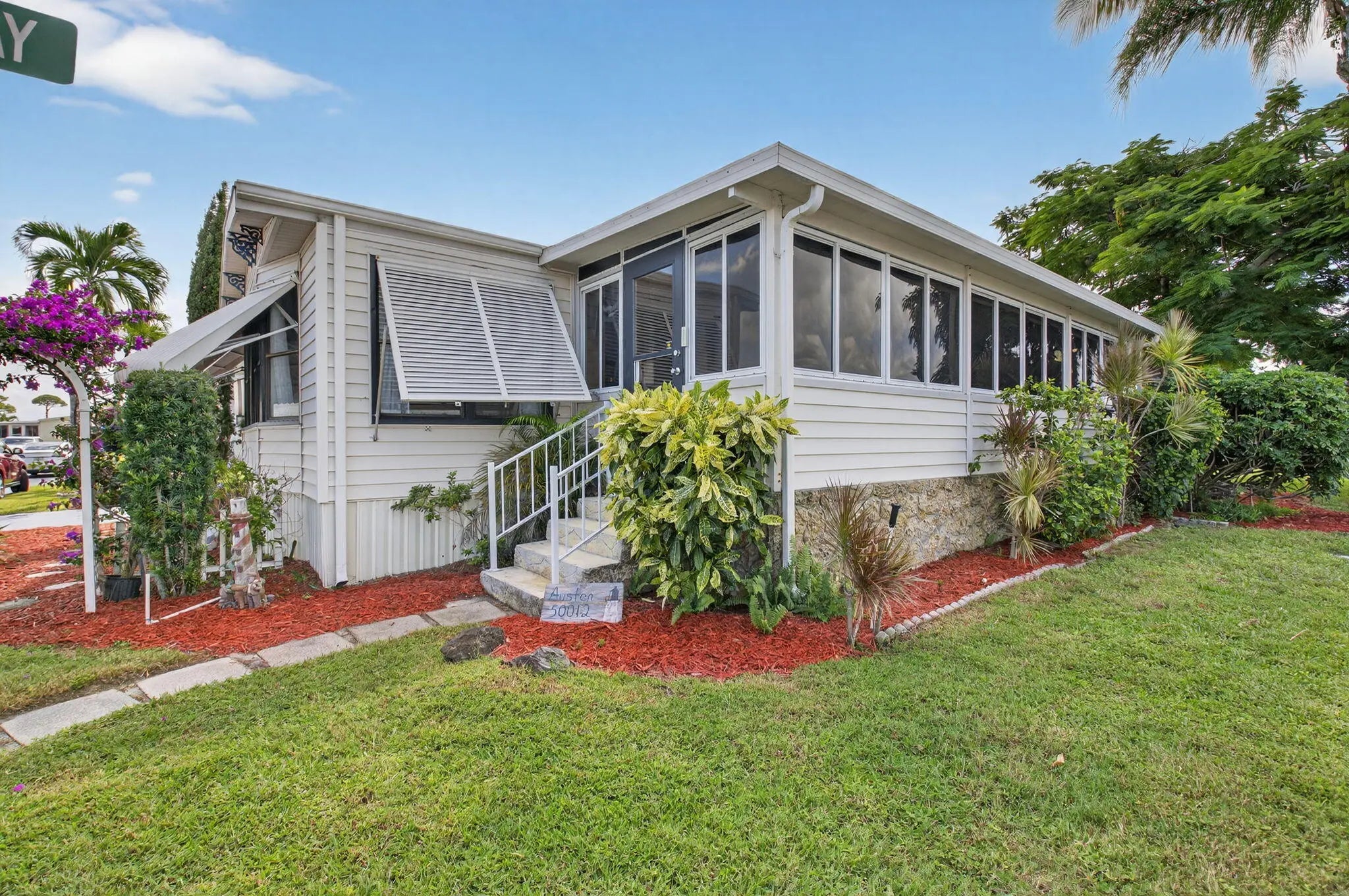 OVER 1600 SQ. FT. OF LIVING SPACE! OPEN CONCEPT living in this unit with CUSTOM cabinets and QUARTZ countertops! NEWER Samsung appliances in the kitchen! Bathroom is handicap accessible with a roll in shower and new floors and vanity! BRAND NEW washer/dryer inside. Large Florida room is an extra living space that is not included in the square footage (with A/C!) Corner lot with attractive landscaping and a side patio. VAULTED ceilings in living area! MOTIVATED SELLERS! PRESENT ALL OFFERS!Low HOA at only $270 per month includes: internet, water, sewer, trash removal, and 24 Hr manned gate. 2 heated pools, clubhouse, billiards, pickleball, golf chipping area, motorcycle and RV parking. Pet friendly with 2 pets allowed up to 20 pounds each. CASH ONLY community with no rental
