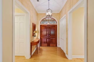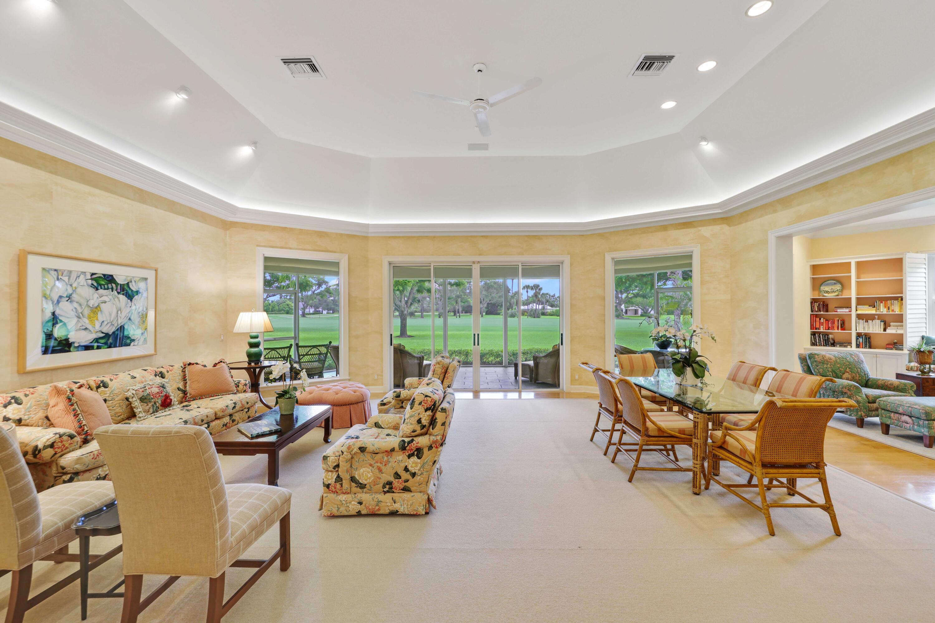 Elegantly situated in the prestigious Village of Golf, 5 Country Road East A is a gracious single-family residence offering timeless style and serene golf course views. Built in 1996 and thoughtfully maintained, the home encompasses 4,131 total square feet with 3,198 square feet under air on a beautifully landscaped 0.82-acre lot. The classic, traditional design welcomes you with a formal entry leading into a grand living room featuring soaring ceilings and walls of glass that frame the tranquil fairway setting. Ideal for entertaining, the living space flows seamlessly to an enclosed lanai, perfect for year-round enjoyment. Inside, rich hardwood floors, custom built-ins, and a warm family room off the kitchen create an inviting atmosphere. The chef's kitchen is appointed with a largekitchen island, granite countertops, premium appliances, and an oversized pantry. The spacious primary suite offers high ceilings, abundant closets, and a luxurious bath with dual vanities, soaking tub, and separate shower. An attached office provides the perfect private retreat. Two large guest suites, each with walk-in closets and ensuite baths, complete the split-bedroom plan. Notable features include a brand-new roof, impact glass windows (2014), a full-house generator, newer HVAC systems, and an attached two-car garage. Combining timeless elegance with modern comforts, this exceptional home presents a rare opportunity to enjoy Village living at its finest.