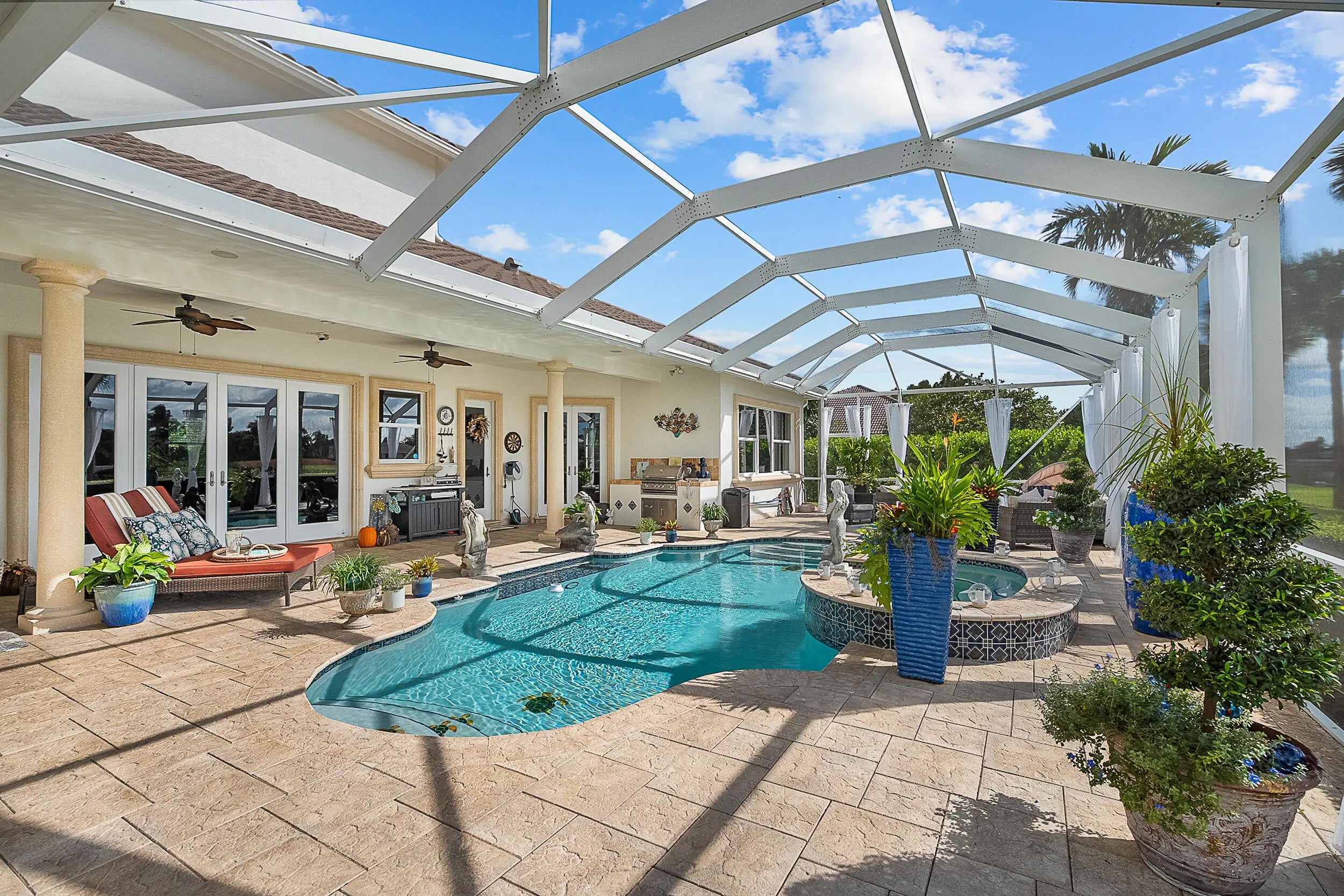 Auto Sprinkler, Built-in Grill, Covered Balcony, Open Balcony, Outdoor Shower, Screened Patio, Summer Kitchen, Zoned Sprinkler