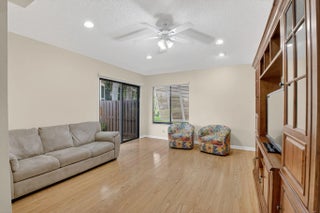 Lakeside Condominium of Banyan Springs, first floor, corner unit in the heart of Boynton Beach. Gated, Active Community with extensive amenities and activities. This 2 bedroom, 2 bathroom unit offers a private front porch and screened entry. Additionally, there is a private, screened/covered patio off the kitchen. This split bedroom floorplan is spacious offering plenty of closet space as well as an interior laundry room with washer and dryer combo. Easy living on the first floor and with assigned parking. Brand new HVAC system and hot water heater, updated kitchen and no carpet. This unit has so much to offer as well as the community.
