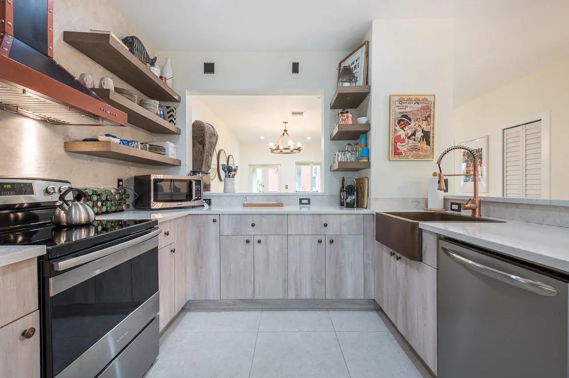 Beautifully remodeled corner-unit townhome in gated Coastal Bay, just minutes from the beach, I-95, and Downtown Delray! This modern Mediterranean-style home offers 2 bedrooms, 3.5 baths, and a versatile bonus room perfect for a home office, gym, or guest space. The stylish kitchen features stainless steel appliances, light wood cabinetry, quartz countertops, open shelving, and a custom range hood with copper accents. Bathrooms provide a spa-like retreat with a freestanding soaking tub, glass-enclosed shower with gold hardware, and a dual vanity with a patterned accent wall. Enjoy open-concept living, three balconies, and a spacious two-car garage. Brand new roof and recently refreshed community exterior. Rent includes cable, internet, Orkin pest control, and ADT security.