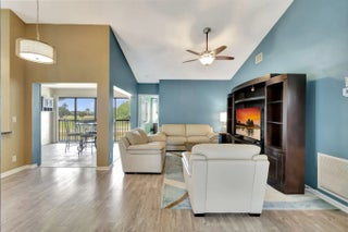 Exceptional updated corner unit with the most fabulous golf course views of the Links Golf Club. The largest unit in The Coves of Aberdeen East. Bring your fussiest buyer to this immaculately maintained condo which features volume ceilings, impact glass, newer AC, 2 bedrooms and open family room (which can easily be converted to the third bedroom). Custom flooring throughout. The kitchen features custom cabinetry, stainless appliances, granite counters, and large pantry. THERE ARE NO MEMBERSHIP FEES IN ABERDEEN EAST. The clubhouse amenities are all included in your HOA. More...