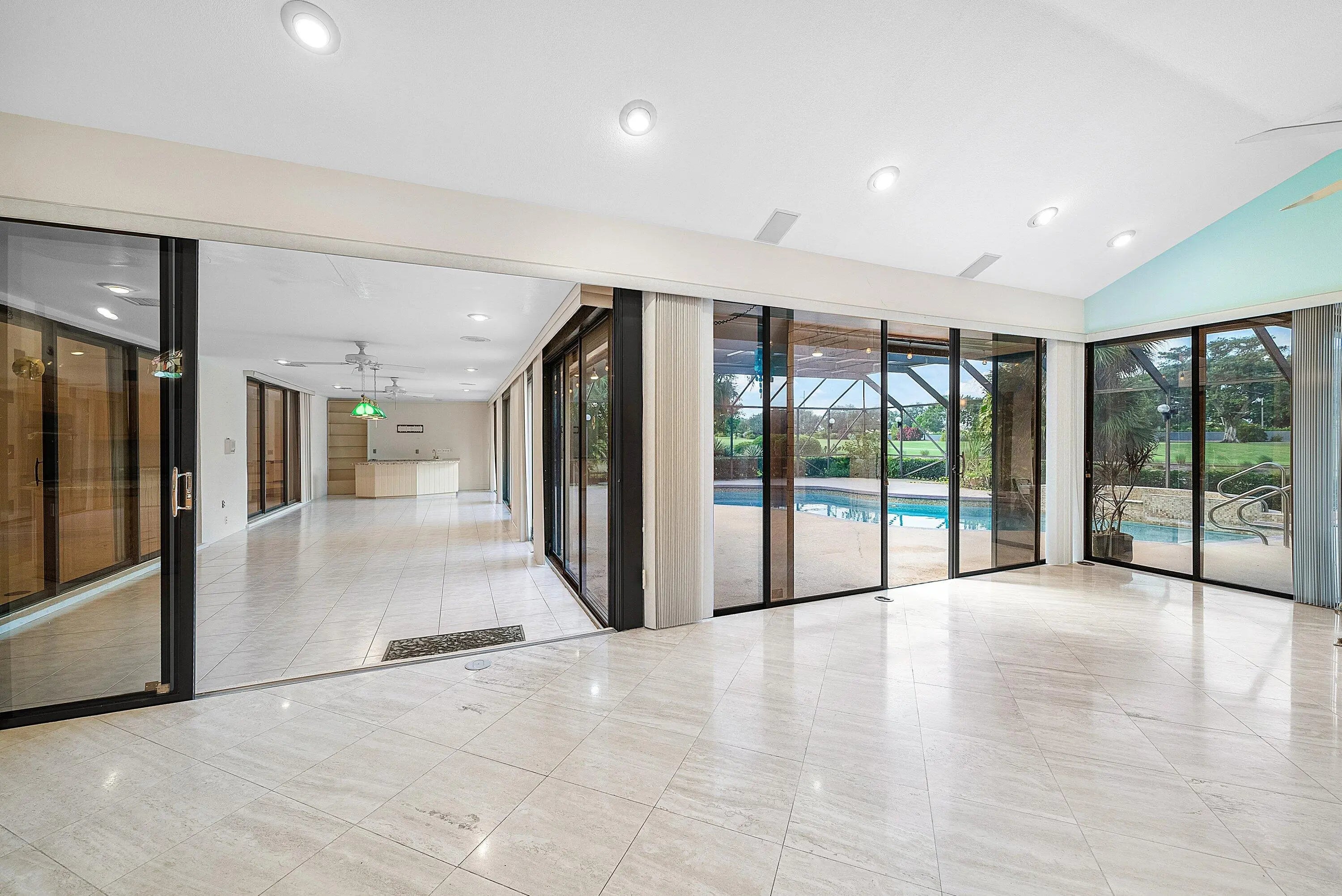 Gorgeous lake & golf views with stunning sunsets! Spacious 4BR split-plan with high ceilings, large family room off kitchen with fireplace & huge windowed Florida room. Pool, spa & patio plus newer roof. Located in the desirable Bocaire Country Club -- an exclusive boutique club of just 239 homes with championship golf, racquets, fitness, dining & a vibrant social community. Close to beaches, shopping, restaurants and entertainment - A school district. This home has great bones - bring your vision! Make this home your own!