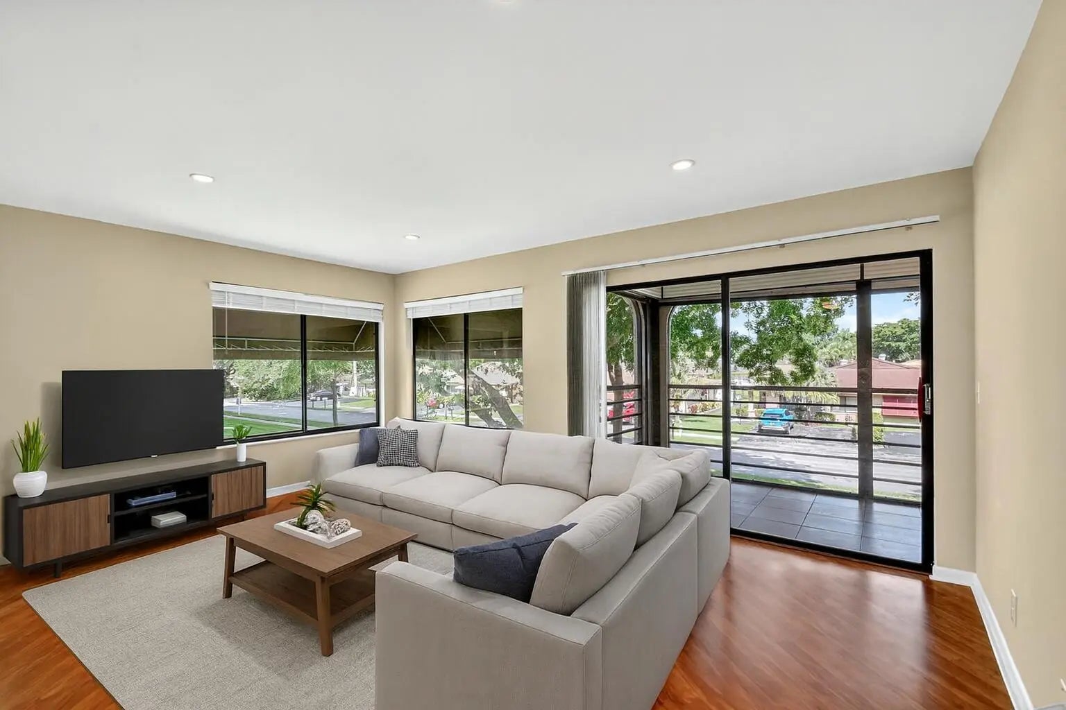 This bright and spacious 2-bedroom, 2-bathroom second-floor corner condominium in Banyan Springs offers an exceptional 55+ living experience. The open layout benefits from abundant natural light, while the screened balcony provides an ideal setting for relaxation. Both bedrooms are generously sized, affording comfort and privacy, with two full bathrooms for convenience. Residents have access to a range of resort-style amenities including tennis, pickleball, two swimming pools, a clubhouse cafe, fitness classes, and regularly scheduled social events. The property is set amidst well-maintained, park-like grounds, offering a serene environment. Please note: rental is permitted after one year (one time per year, six-month minimum).
