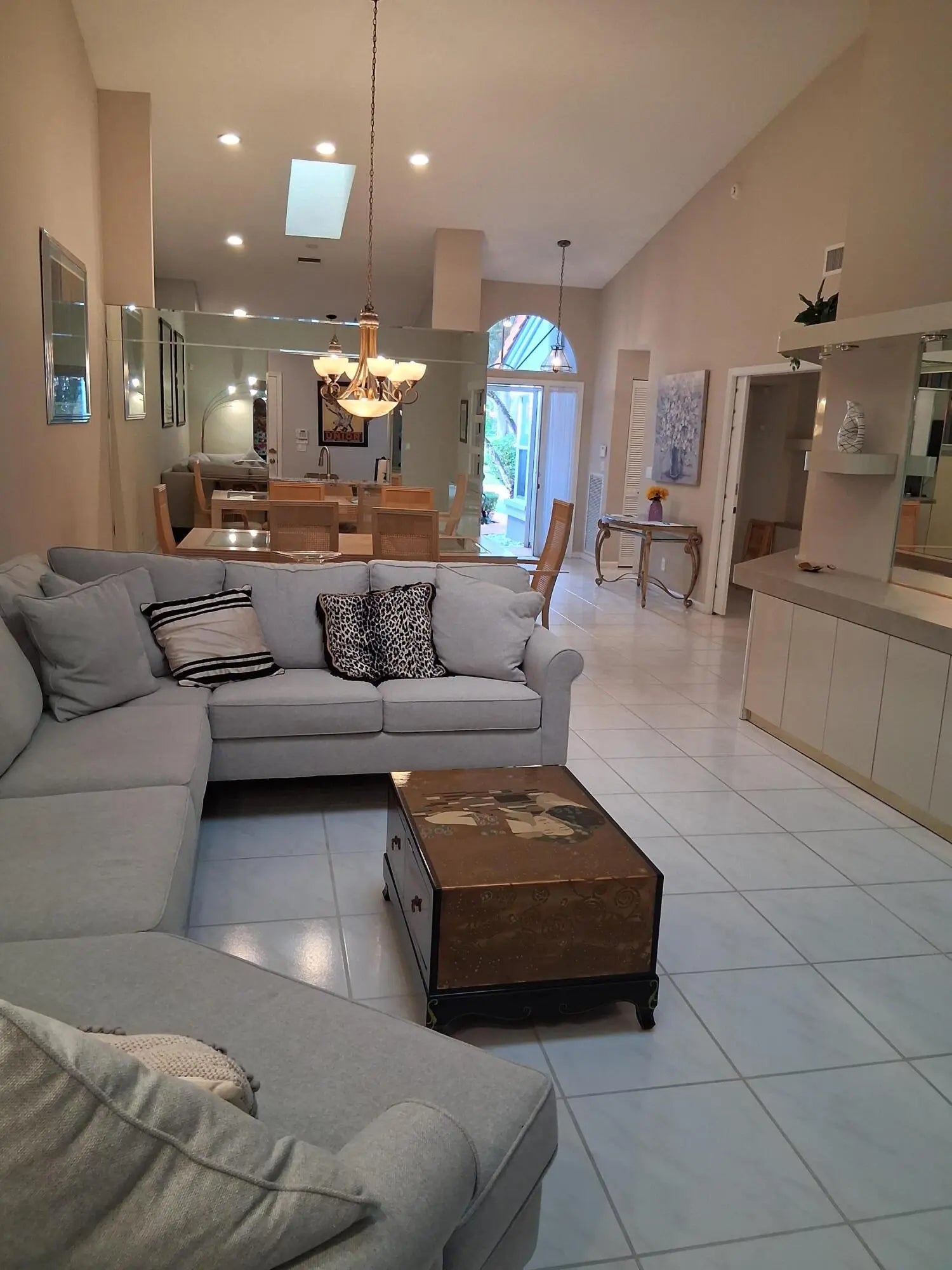 In the heart of Palm Isles--just steps from world-class amenities--this impeccably maintained villa blends comfort, style, and convenience. High ceilings and thoughtfully placed skylights fill the home with natural light, complementing the durable ceramic tile flooring throughout all living areas. The 1-car garage adds everyday practicality, while accordion hurricane shutters provide peace of mind year-round. Enjoy the private screened patio, perfect for relaxing or entertaining. Explore the 3D walkthrough tour for an ''in-person'' experience!Palm Isles offers resort-style living with 4 outdoor pools, an indoor pool, tennis, pickleball, clubs, events, an on-site cafe, and more. The multi-million-dollar renovated clubhouse reopens later this year--get in now and get ahead!