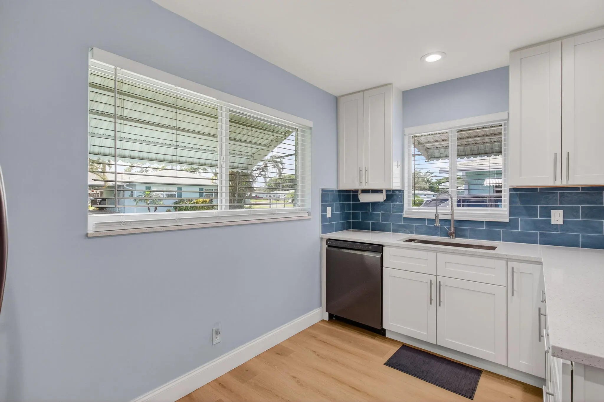 Experience the best of modern Florida living in this beautifully renovated 2-bedroom, 2-bath villa, ideally situated on a peaceful canal in the highly sought-after 55+ community of Country Manors. Every inch of this home has been thoughtfully updated to combine contemporary style with comfort and functionality, offering a truly move-in-ready retreat just minutes from downtown Delray Beach. The modern kitchen is a showpiece, featuring white shaker cabinetry, sparkling quartz countertops, a stunning tile backsplash, and stainless-steel appliances. Every detail has been designed for beauty and practicality, from ample storage to the sleek finishes that complement the open layout. The home's primary suite is a tranquil haven with a walk-in closet and an updated ensuite bathroom showcasing