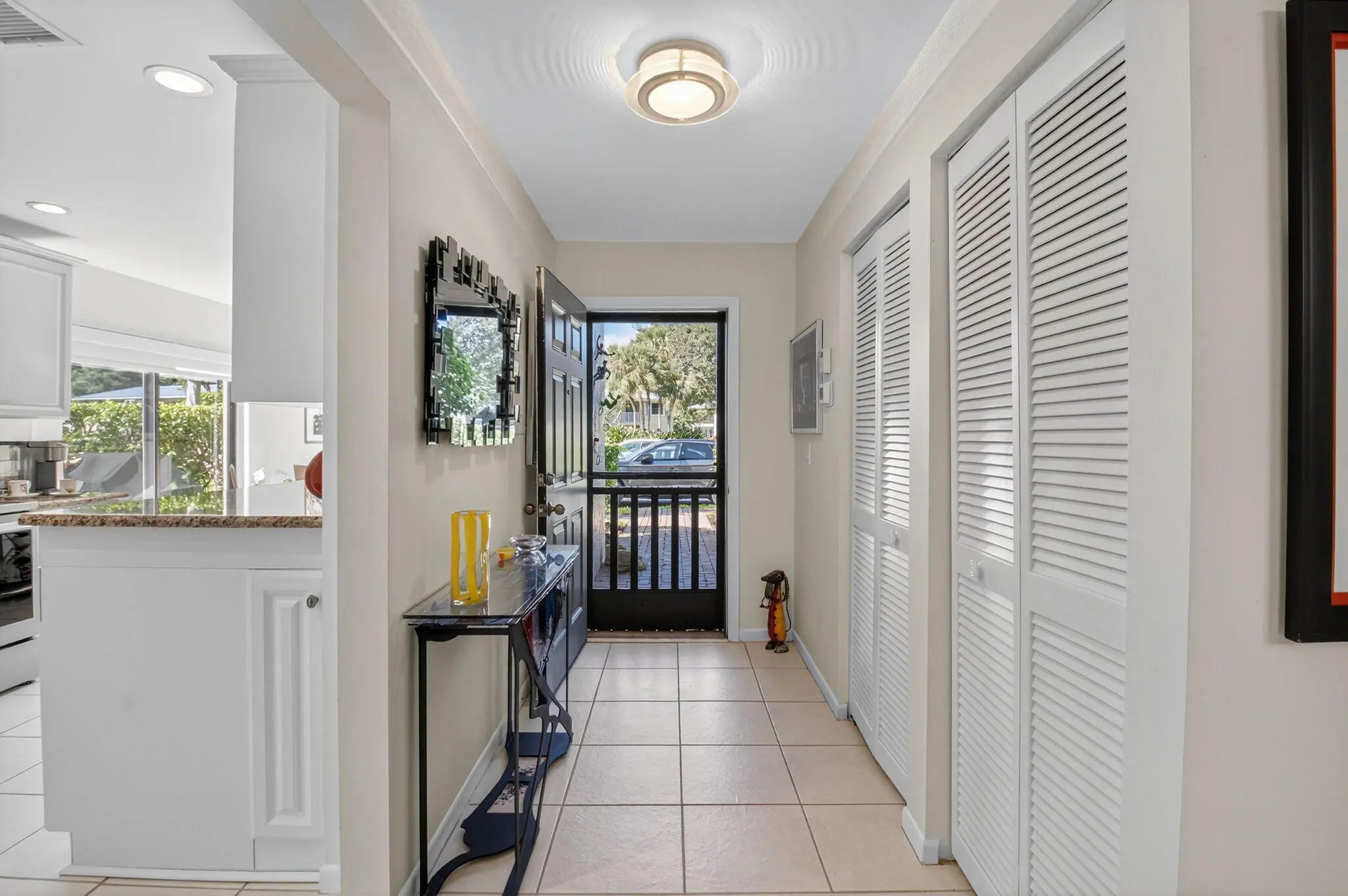 Don't miss this opportunity to make this exceptional 1st floor corner apartment your own. Modern updates, spectacular lake views, & inviting outdoor spaces. Open concept w/white ceramic floors throughout living areas. Very Light & Bright, Sliding glass doors from kitchen & dining area to outdoor patio. Perfect for entertaining/golf cart parking. Screened Lanai to enjoy gentle breezes & tranquility. Updated primary en suite. New A/C, newer hot water heater, washer & dryer. LED lighting throughout, and NO POPCORN ;-)