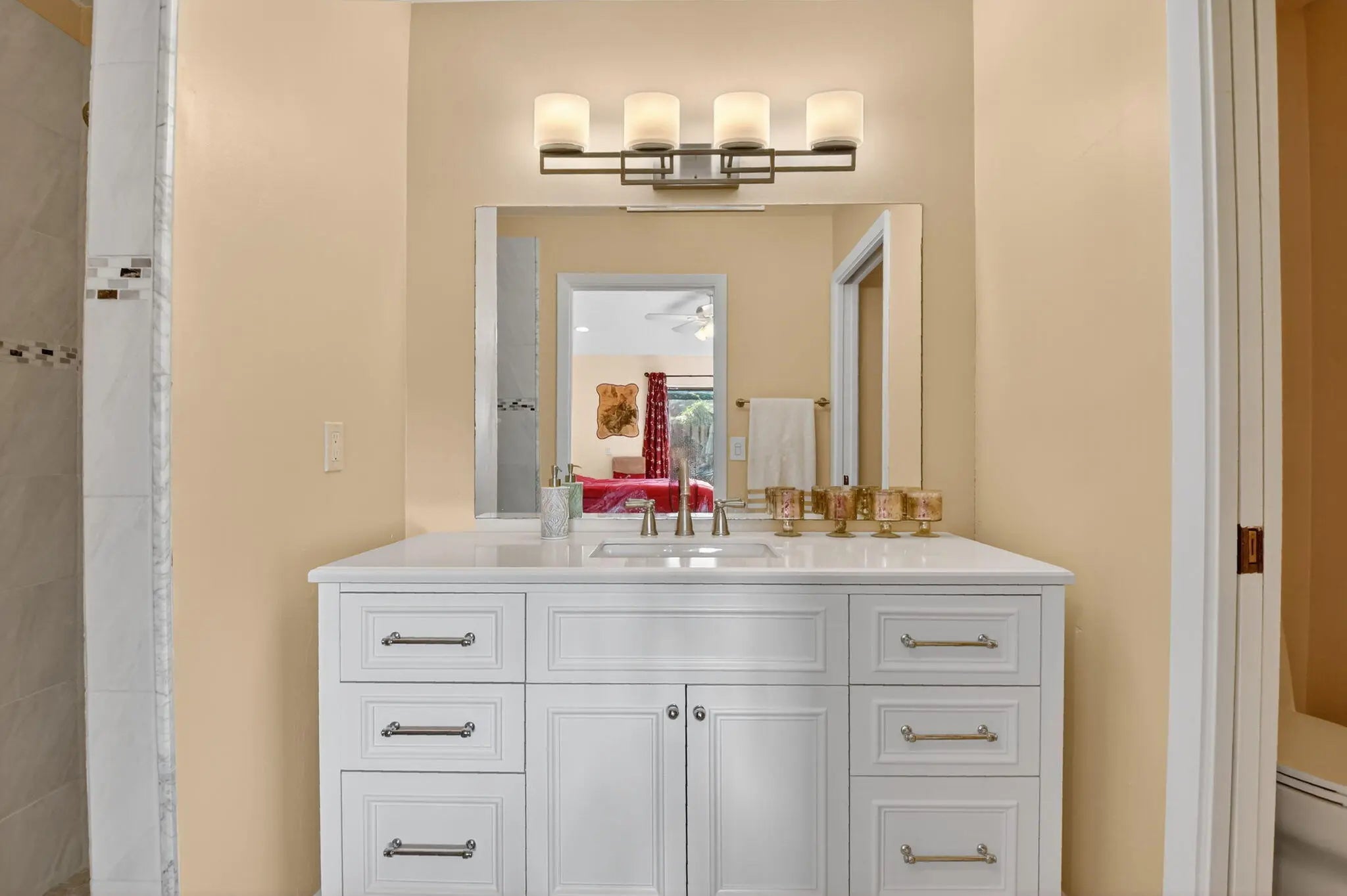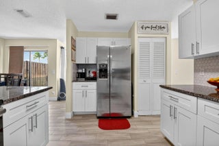 Explore the charm of this inviting 2-bedroom, 2-bathroom villa in the Willowbrook community of The Meadows in Boynton Beach. As a corner unit on one level, enjoy quiet living without neighbors above. Step inside to plank tile floors that flow through the main areas, leading to an updated kitchen with fresh cabinets, granite counters, and stainless steel appliances. The main bedroom welcomes abundant natural light and soft recessed lighting, creating a serene retreat. Its refreshed bathroom adds a touch of comfort. Outside, a fenced patio offers a private spot to relax and unwind. The reasonable HOA fee includes the roof maintenance, saving you money! And the roof is only 3 years old. Imagine making this your cozy haven. Schedule a showing today and feel the warmth for yourself