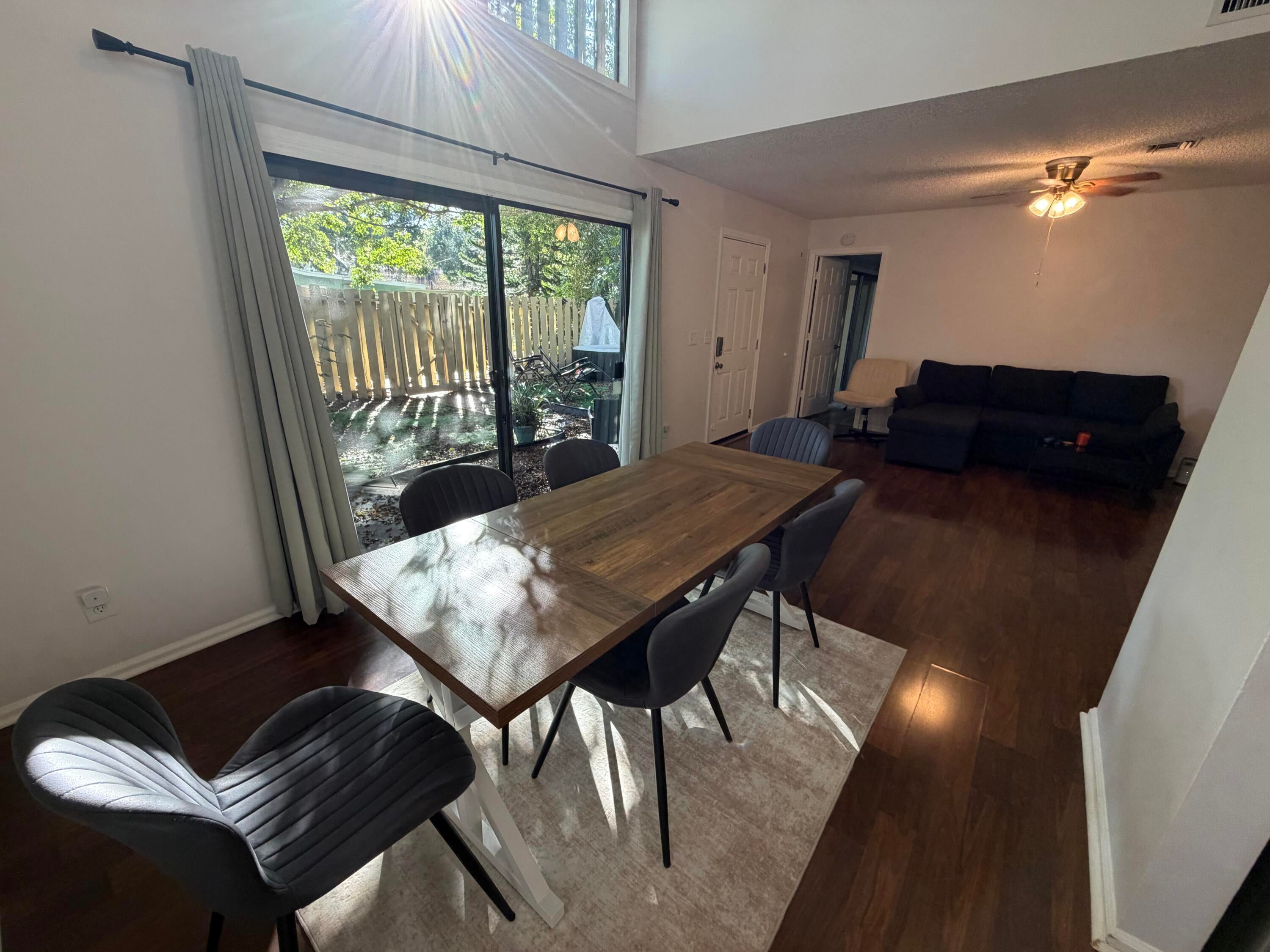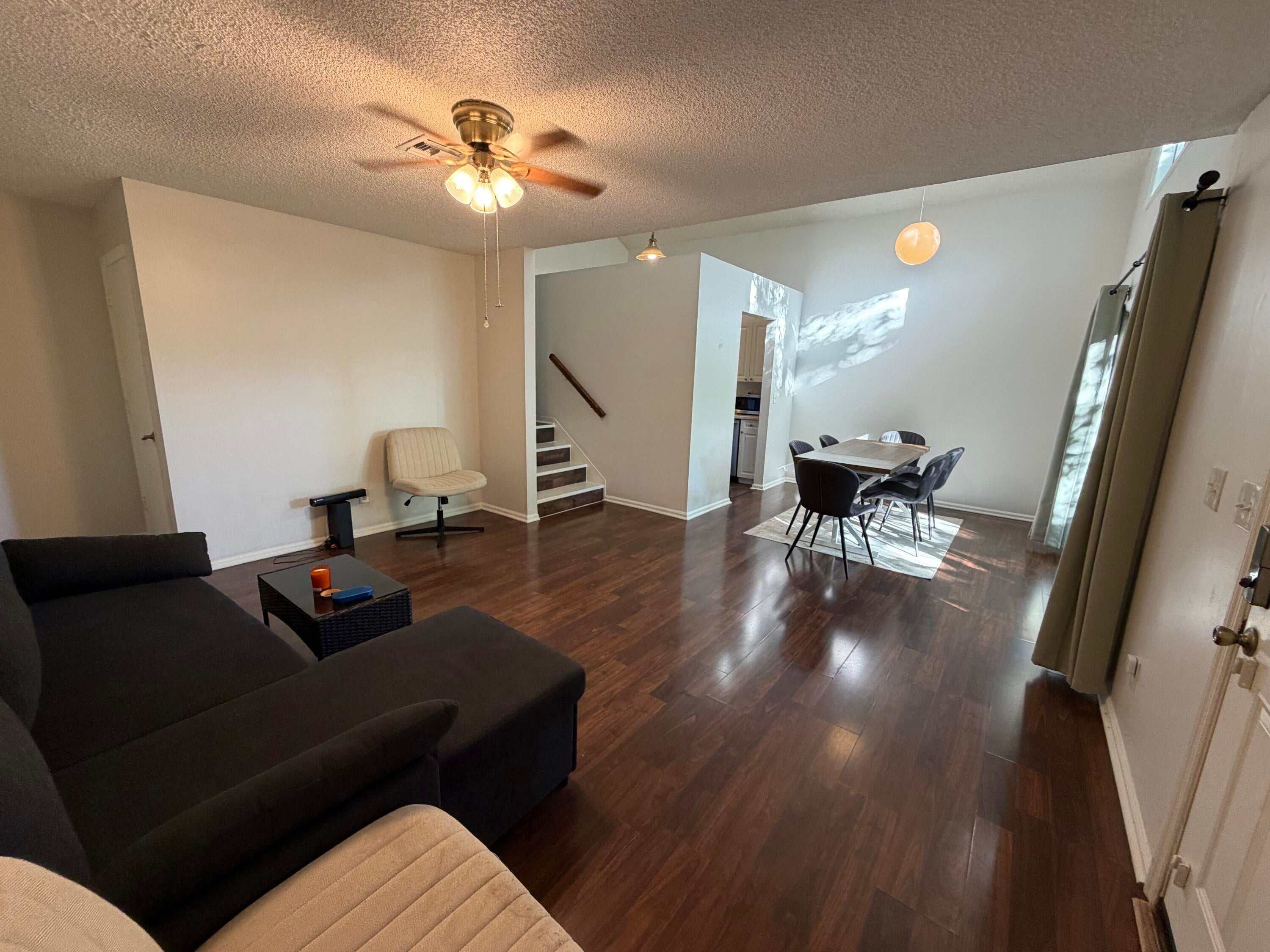 Don't miss out on this charming MOVE IN READY PARTIALLY FURNISHED home! This two-story townhome freshly painted inside & out, new bathroom vanities & flooring on 2nd floor! Generous space w/soaring vaulted ceilings, numerous sliders leading to private yard, 1st floor master suite w/walk-in closet. Balcony overlooks large private fenced yard w/mature shade tree, storage & laundry closet. SMART LOCK TECHNOLOGY INCLUDED! Great school district, and all the makings for a great family home. First, last and security deposit required upon lease execution. Credit and background checked with application. THIS WILL NOT LAST!