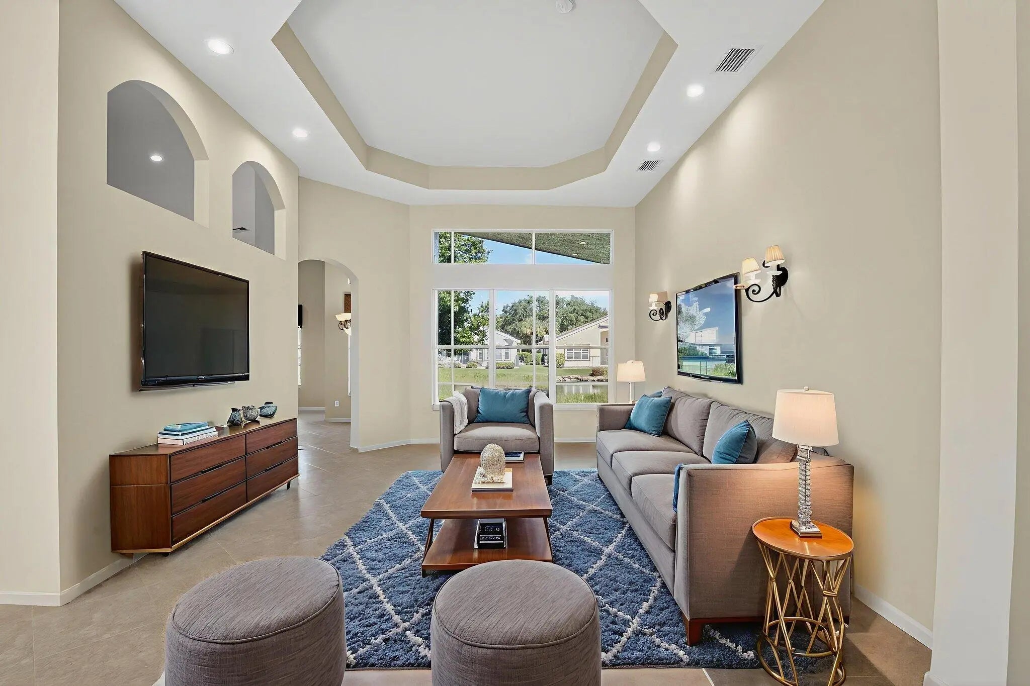 NEW ROOF FEBRUARY 2026 & EXTERIOR FRESHLY PAINTED FEBRUARY 2026! UNIQUE LOVELY RARE COSTA DEL SOL MODEL ON THE WATER. TWO AC UNITS, NEUTRAL TILE IN MAIN LIVING AREAS. LIVING ROOM HAS A TRAY CEILING WITH LOTS OF NATURAL LIGHT. SPACIOUS FAMILY ROOM WITH VAULTED CEILING AND SLIDER DOORS LEADING TO THE LANAI. BEAUTIFUL LAKE VIEWS FROM THE FAMILY ROOM AND BREAKFAST NOOK. THE KITCHEN HAS WOOD CABINETS, SAMSUNG DARK SS APPLIANCES FROM 2021 & VAULTED CEILING W/ RECESSED LIGHTING. PRIMARY BR HAS TRAY CEILING AND SITTING AREA W/ DUAL FITTED WALK-IN CLOSETS & AN OFFICE / EXERCISE RETREAT AREA. STUNNING PRIMARY BATH WITH SOAKING TUB, WALK-IN SHOWER & SEPARATE WATER CLOSET. ENJOY SCREEN ENCLOSED LANAI OVERLOOKING THE LAKE. MEASUREMENTS & INFO DEEMED ACCURATE AND SHOULD BE INDEPENDENTLY VERIFIED.