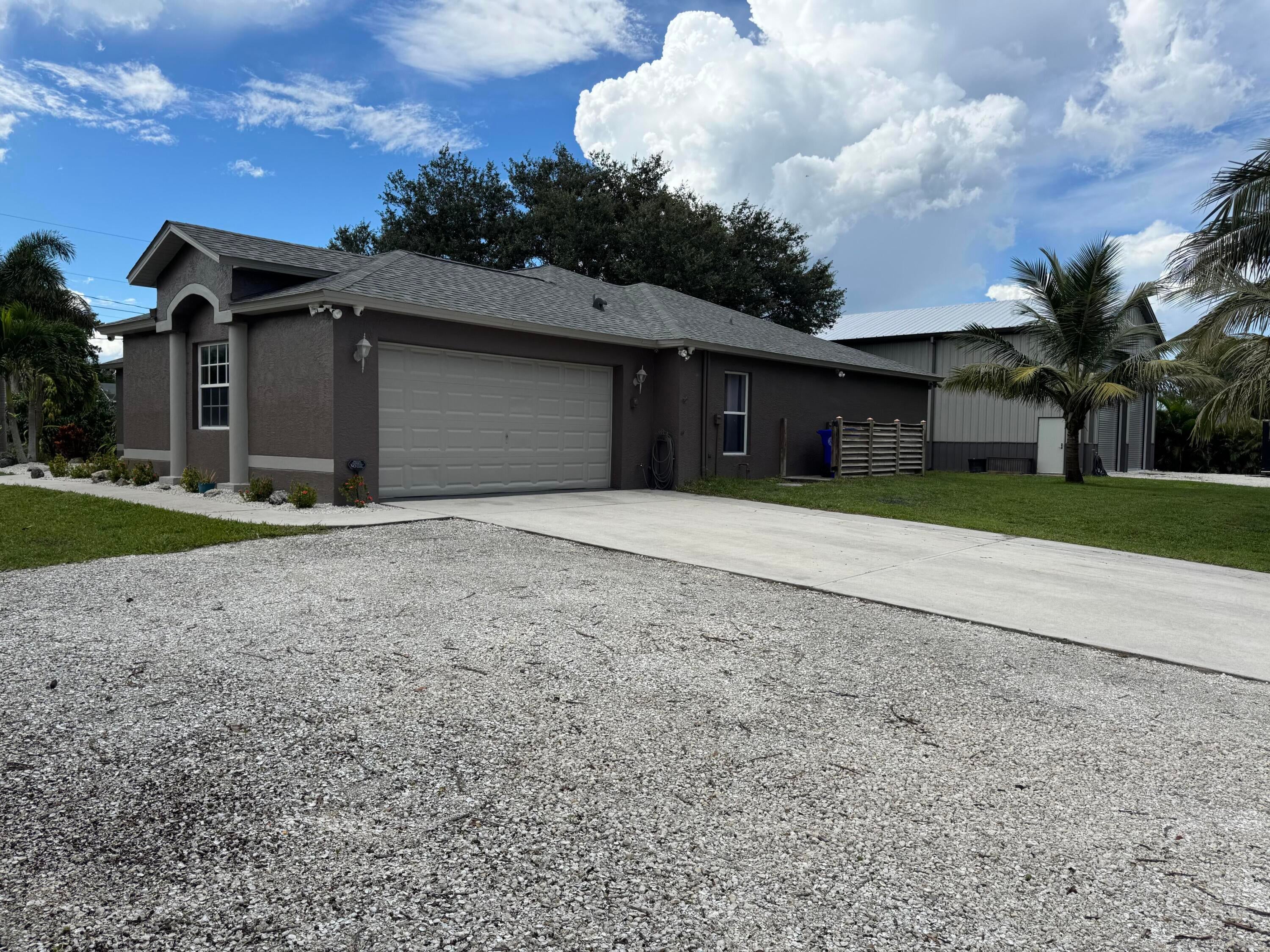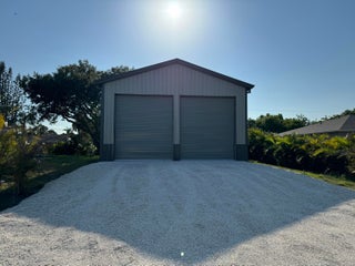 This 3bedroom 2 bath in Vero Lake Estates has no HOA, 2 car attached garage, massive detached 1925sq ft insulated metal building (55'Lx35'Wx25'H ) with two 14' x 16'H Doors, large backyard, covered and screened back porch, over 10 fruit trees on the property, and extra parking. Custom oversized kitchen, granite countertops, breakfast nook, brand new whole home dehumidifier, fresh paint, dual shower in master bath, and newer roof installed Dec 2020. Privacy trees around the property and at the end of a dead end road. Keep all your toys in one place with the detached building and enjoy the freedom of no HOA! Just a short drive to the beach and Sebastian inlet.Room sizes are approximate