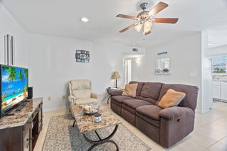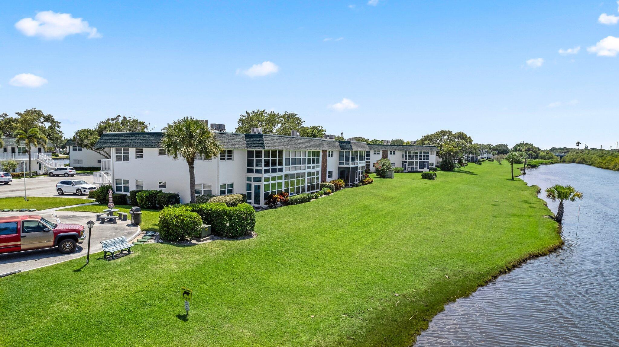 Enjoy water views from every room from this sought-after first floor 2/2 corner unit in desirable 55+ community! Updated kitchen and baths, tile floors throughout, impact windows. Ample parking for guests. Community features pool, clubhouse, shuffleboard, dock for fishing/relaxing. Restuarants and specialty shops just around the corner on Royal Palm Pointe. Only minutes from the bridge and all the island has to offer...restaurants, museum, theater and beaches!