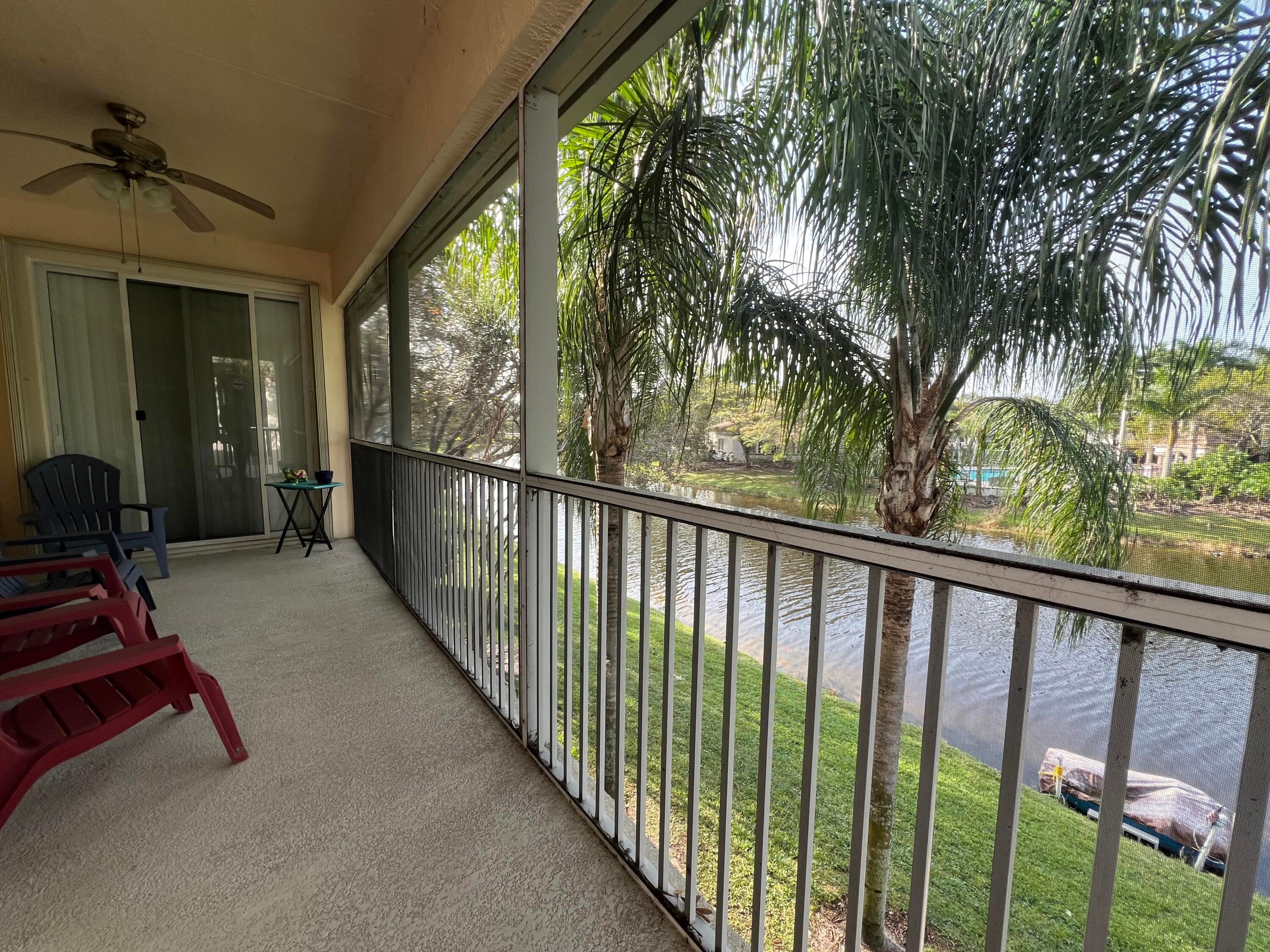 Beautiful waterfront second-floor condo featuring 3 spacious bedrooms, 2 full bathrooms, and 1 car garage. Located in a 55+ community in the heart of Wellington. One person must be 55 years old, and no one under 19 years old can live full-time. Upgraded tile flooring throughout the main living area, and carpet is in all bedrooms. Large open and bright kitchen with an eat-in area and a dining area. Living area open with high ceilings and sliders out to a huge patio. Decorative shelving is perfect for collectables. Full-size laundry room and linen closets, as well. You can watch the sun rise and set from your patio. Enjoy the community pool, fitness, clubhouse, and gated access. Easy access to all things Wellington!