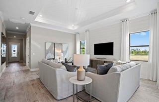 NEW CONTRUCTION: Step into the spacious interior with extended gathering room and elegantly appointed Built In Kitchen. Stunning wood look tiles seamlessly flow throughout . Split bedroom plan plus a den with glass doors. 8' Interior doors added to enhance your living space and garage has been extended to maximize storage. Fresh on-trend finishes adorn this gem of a home. Del Webb Tradition is in it's final phase of building. Come elevate your Active Adult lifestyle before it's too late!