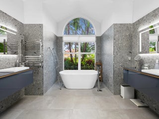 Welcome to this breathtaking 5-bedroom, 3.5-bath estate in the exclusive, guard-gated community of Fieldbrook Estates in the heart of Boca Raton. Situated on a full 1-acre lot of lush, tropical landscaping, this home offers the ultimate blend of privacy, elegance, and South Florida living. Flooded with natural light, the bright, modern interior showcases gorgeous updates and luxurious finishes at every turn. The expansive primary suite is a true retreat -- a huge bedroom paired with a stunning, spa-like bath designed for ultimate relaxation. A sleek wet bar and a gorgeous gourmet kitchen with high-end appliances elevate the home's everyday comfort and entertainment appeal. Impact windows and doors throughout provide peace of mind and efficiency. The backyard is a resort-inspired paradise.