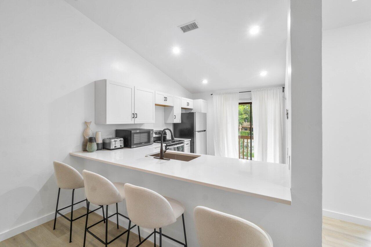 This beautifully appointed 2 bed, 2-bathroom second floor condo is bright ready to be your seasonal home. Remodeled completely from top to bottom, bran new appliances and modern feel. Seasonal rate is $5500. Fully furnished and turnkey, ready to occupy immediately. Condo is in building closest to community pool and far from main road.