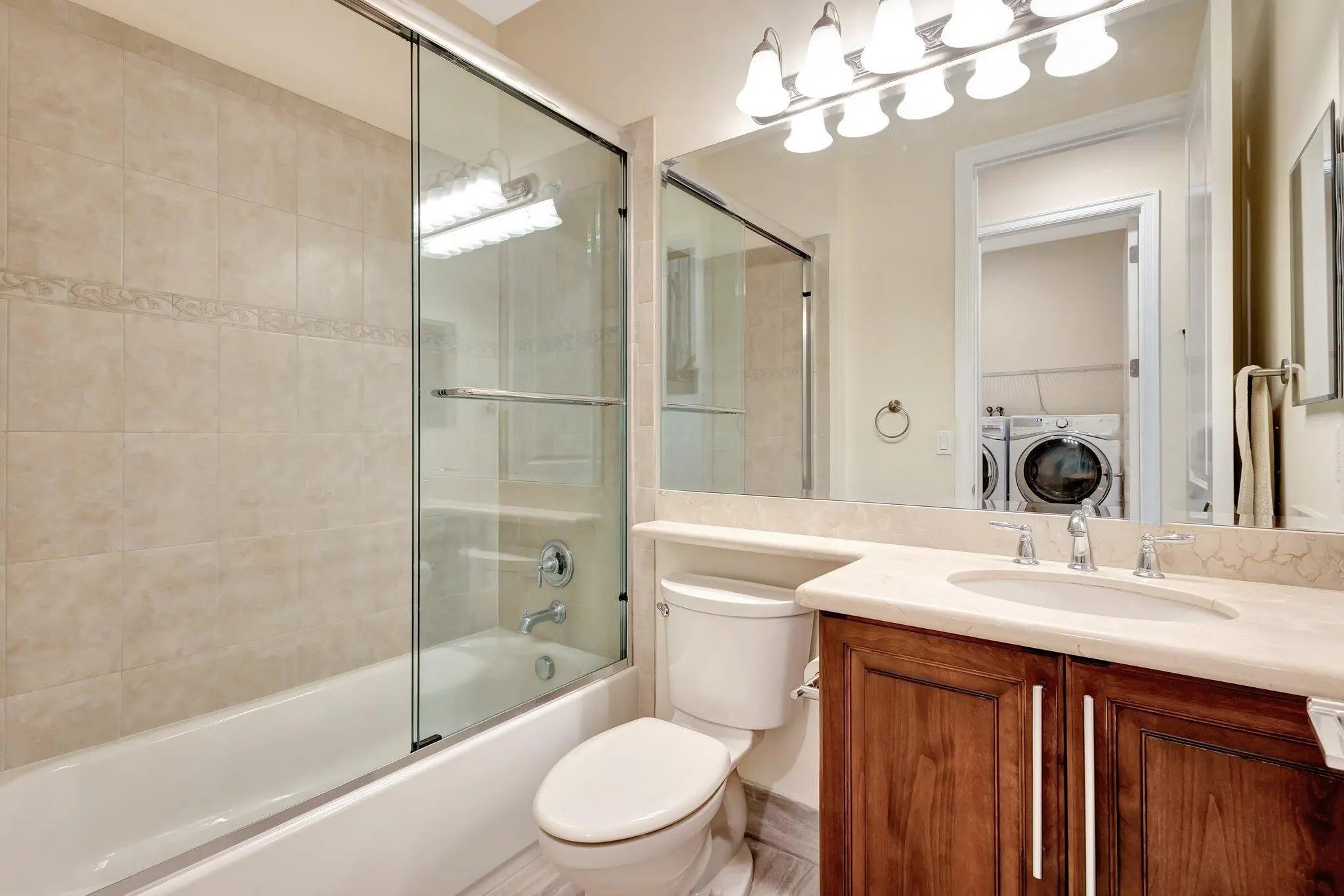 Welcome to Canyon Springs, one of the most desirable manned-gated communities in the area -- featuring a stunning clubhouse, resort-style pool, tennis and basketball courts, a gym, and multiple playgrounds. Built by GL Homes with $45,825 in verifiable original builder upgrades, this home is thoughtfully enhanced with premium finishes and top-tier functionality. Enjoy a chef's kitchen equipped with top-of-the-line KitchenAid appliances, including a convection oven and a newer LED-lit dishwasher. The first floor features large-format porcelain tile. Additional upgrades include solid-core millwork doors, plantation louvered linen closets, upgraded baseboards and moldings, and impact windows and doors -- including an insulated garage door with smart controls.