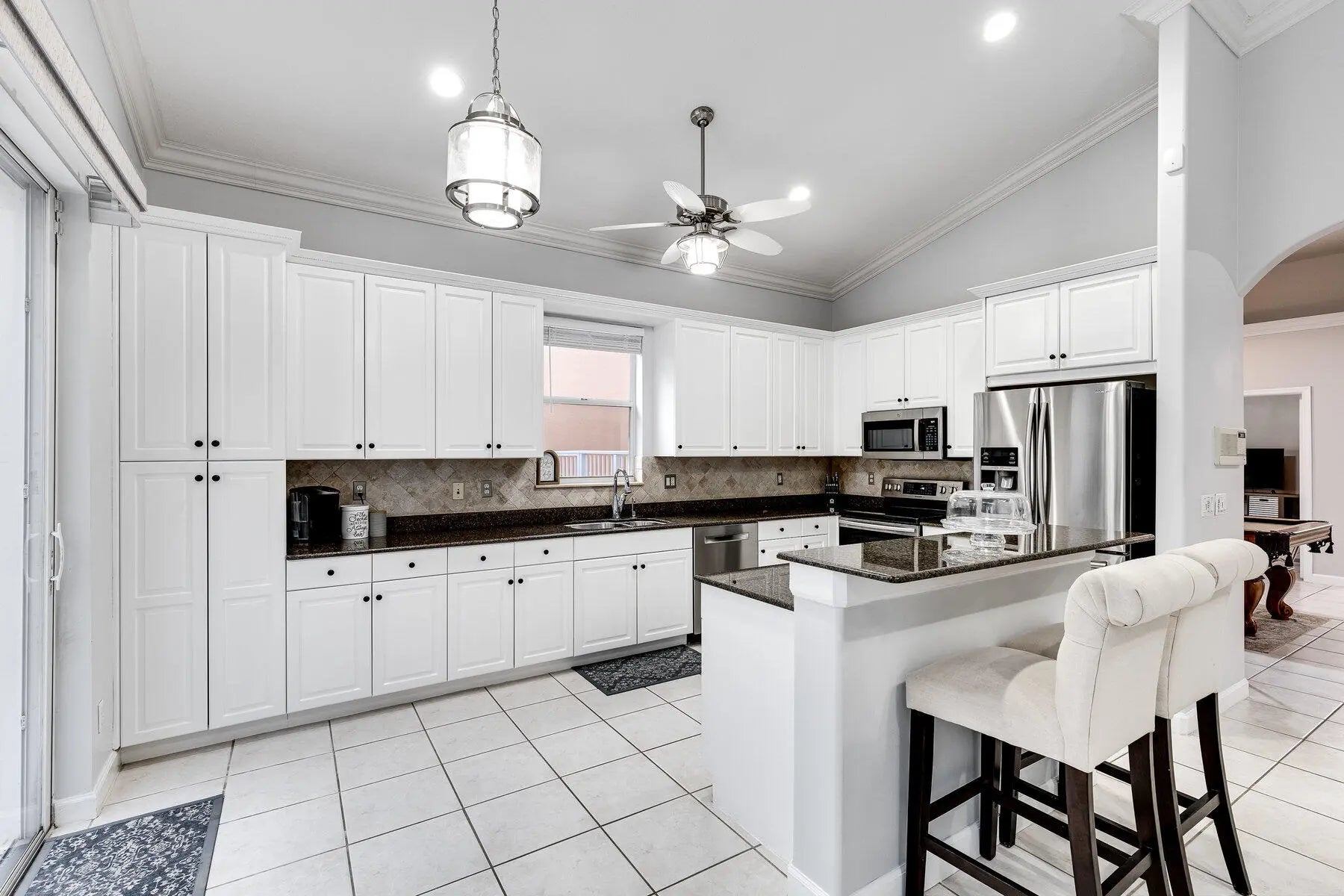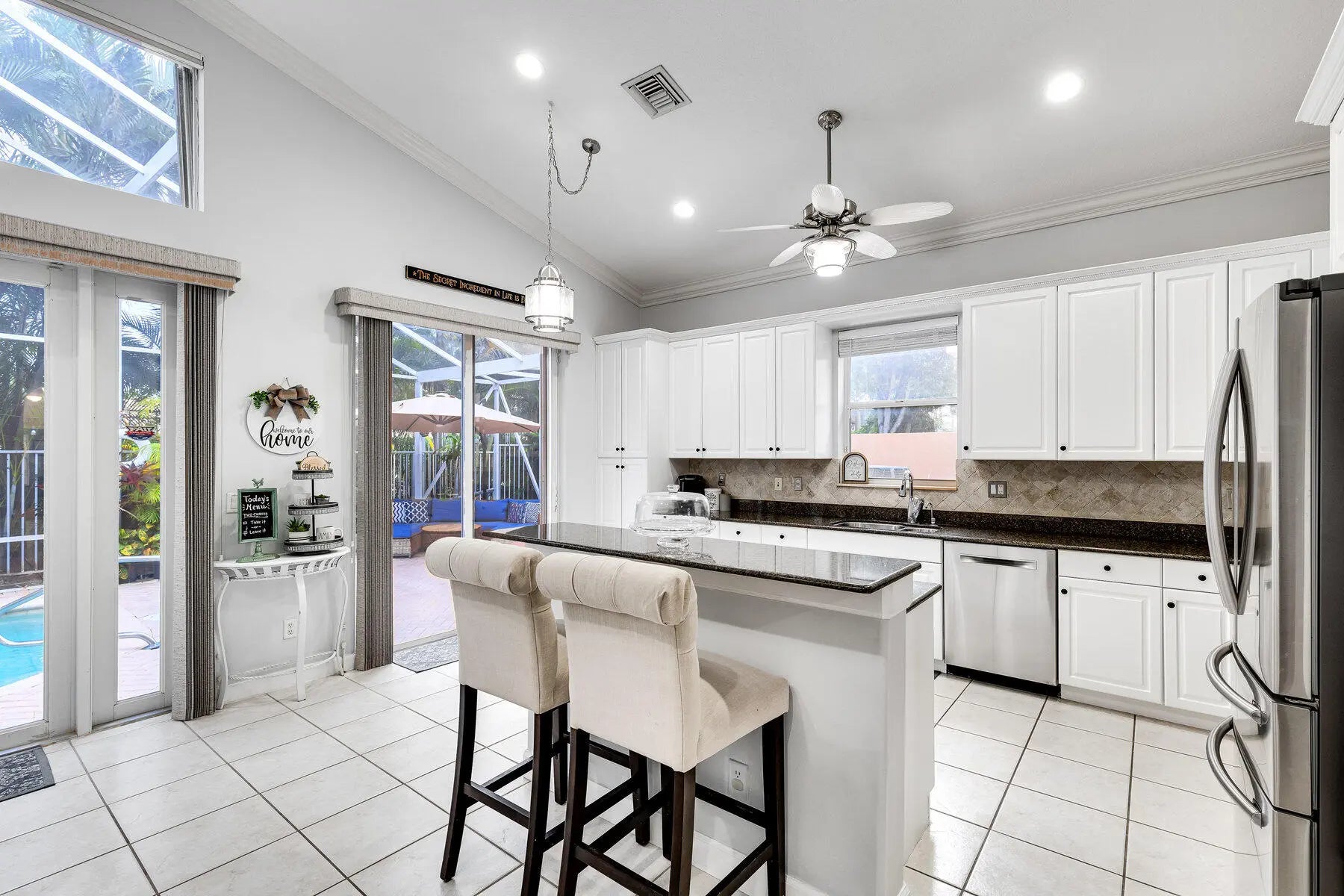 Welcome home to this beautifully maintained 3-bedroom, 2.5-bath + den, pool home tucked inside the gated community of Colony Preserve in Boynton Beach. With nearly 2,000 square feet of living space, this home blends comfort, function, and Florida charm.Step inside to high ceilings, tons of natural light, and an open layout designed for easy everyday living. The spacious family room flows right into the dining area and kitchen perfect for entertaining or relaxing after a long day. The kitchen features white cabinetry, granite countertops, stainless-steel appliances, and plenty of cabinet space with roll-out shelves, plus a large island perfect for entertaining.