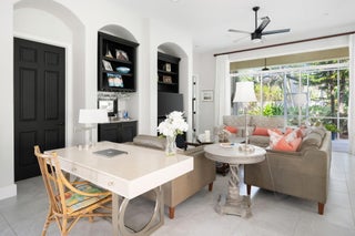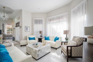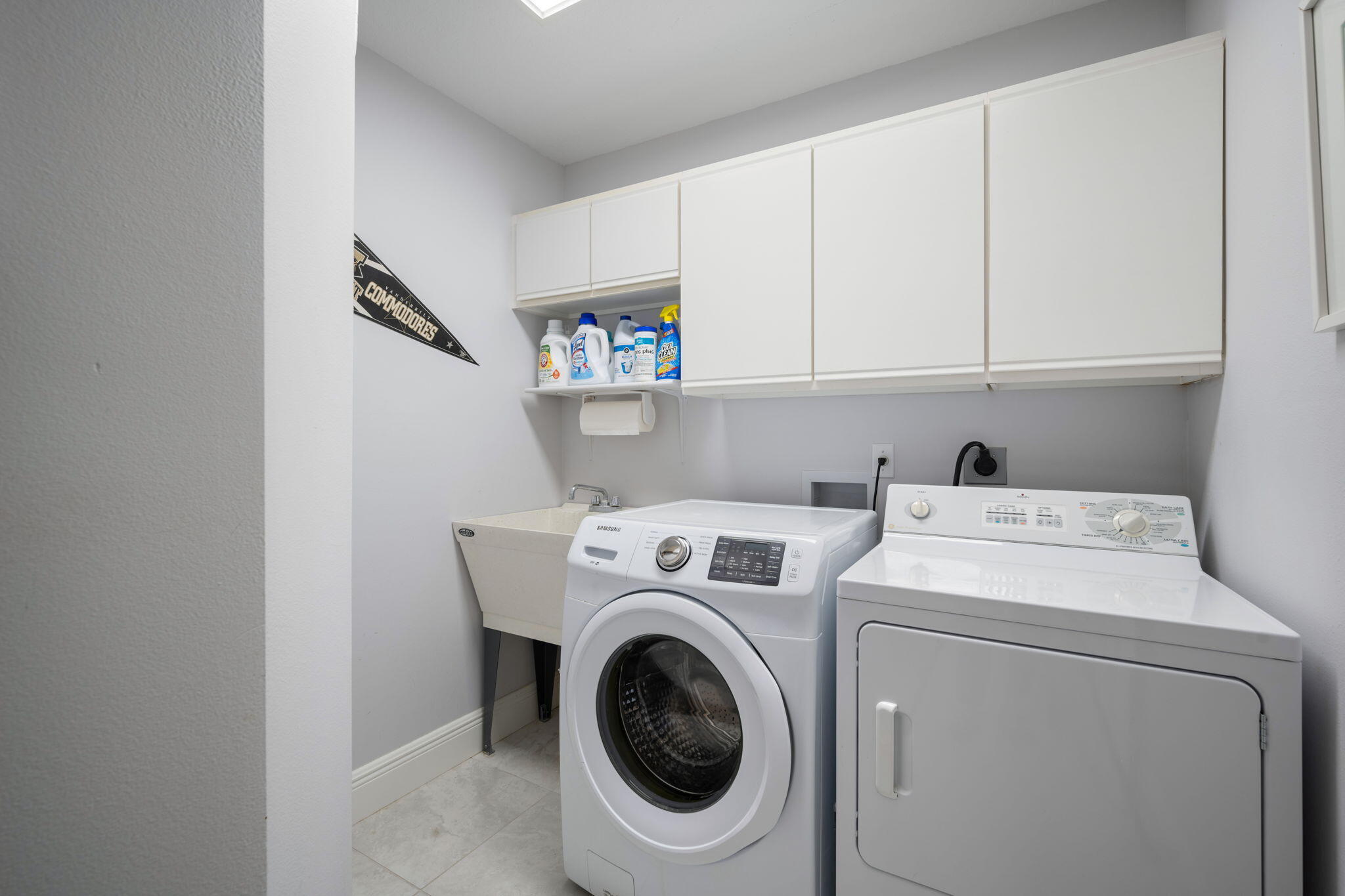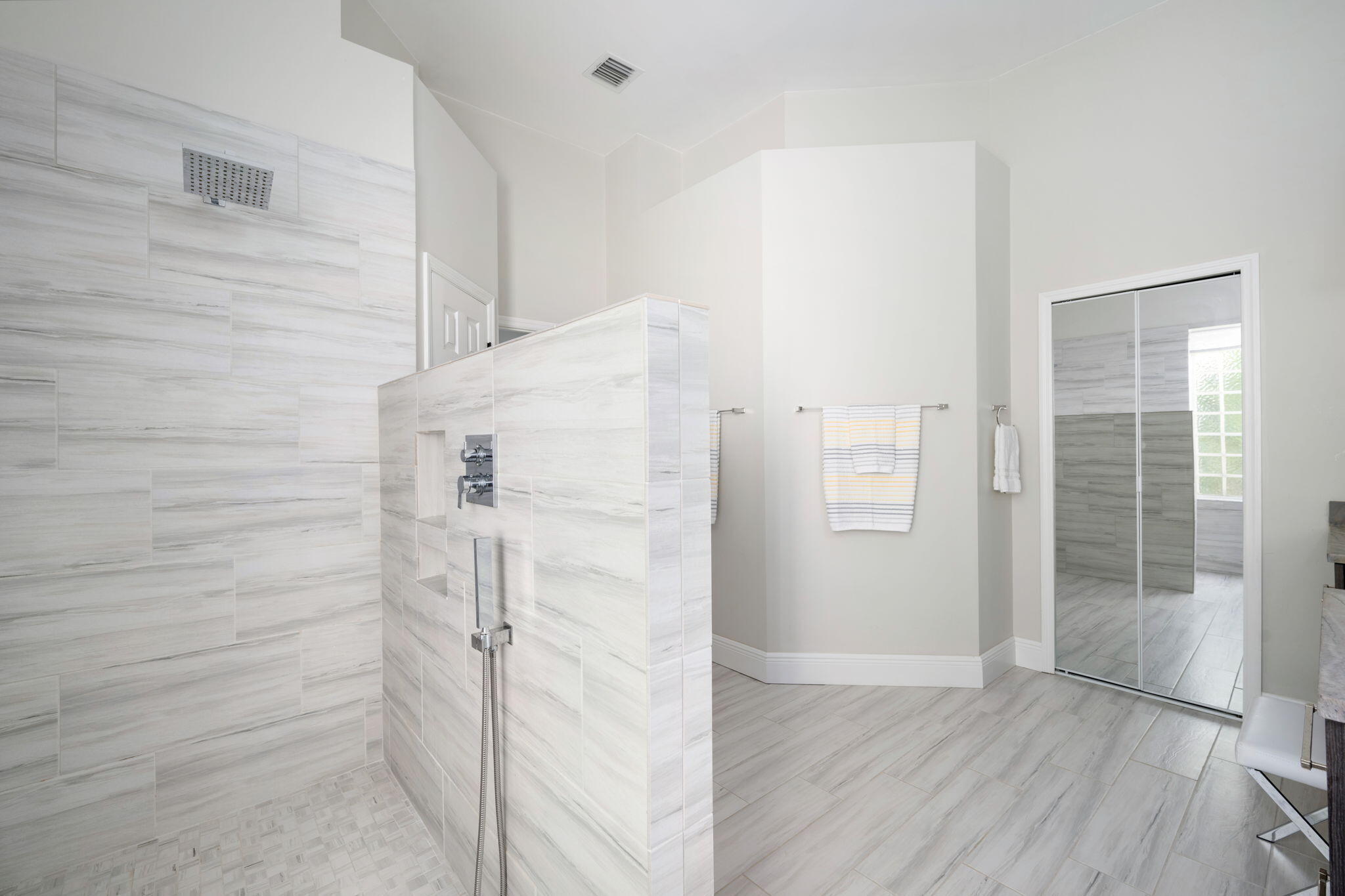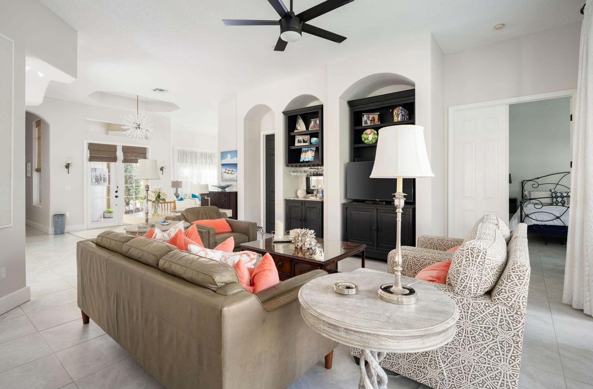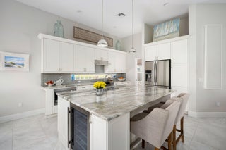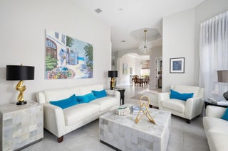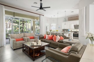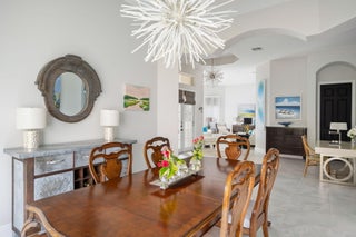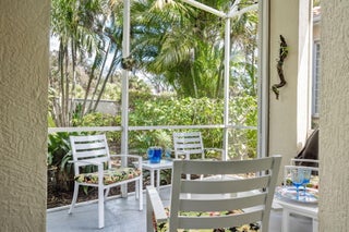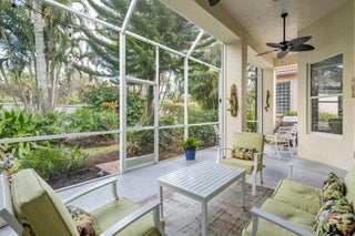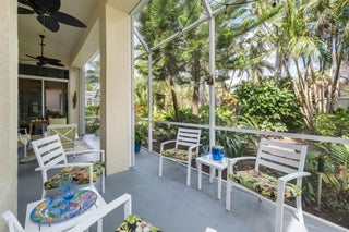 Wow factor! This 3 bedroom/2.5 bathroom home is full of natural light and has an open floor plan with high ceilings. It has porcelain tile throughout. The island kitchen contains custom built in cabinets and quartz countertops. Updated bathrooms and other renovations. A private backyard with lush landscaping. Accordion shutters. Lawn care is included along with deeded beach access and recreational facilities.