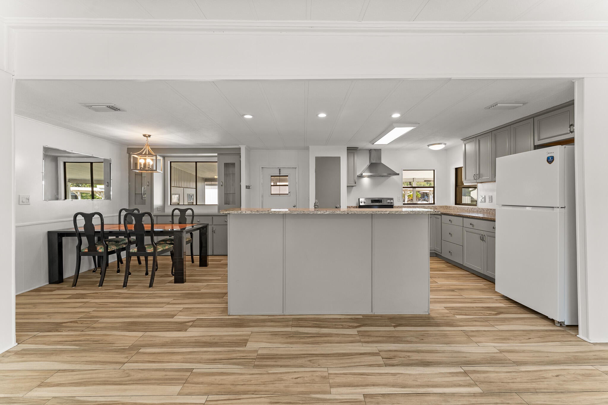 YOU OWN THE LAND! Enjoy affordable living with a low $169/month HOA in the active 55+ community of St. Lucie Falls. This beautifully updated 2 bed, 2 bath home features a **brand-new 2025 roof and A/C** for peace of mind. The remodeled kitchen shines with an open layout, center island, and breakfast bar, while wood-look tile floors flow throughout for easy care. Just two doors down from one of the clubhouses and heated pools, you'll love the convenience and vibrant lifestyle - bingo nights, dinner dances, holiday events, and more! Amenities include **two clubhouses, two pools, tennis, pickleball, bocce ball, and RV/boat storage. **Escape the cold winters or enjoy year-round sunshine in this friendly, welcoming community where neighbors quickly become friends.