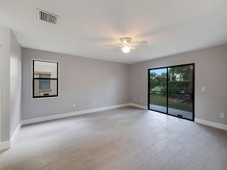 Remodeled ground floor spacious 3 bedroom 2 bath condo. Brand new white, light, bright kitchen with full size washer and dryer in unit. Fresh paint accents the grey, wood slat tile throughout the unit. Master Bedroom is large with plenty of closet space. Nice size patio in front and screened patio in back. Located on a quiet street in the heart of Wellington. Community has heated pool and clubhouse. Come see today, this one won't last!