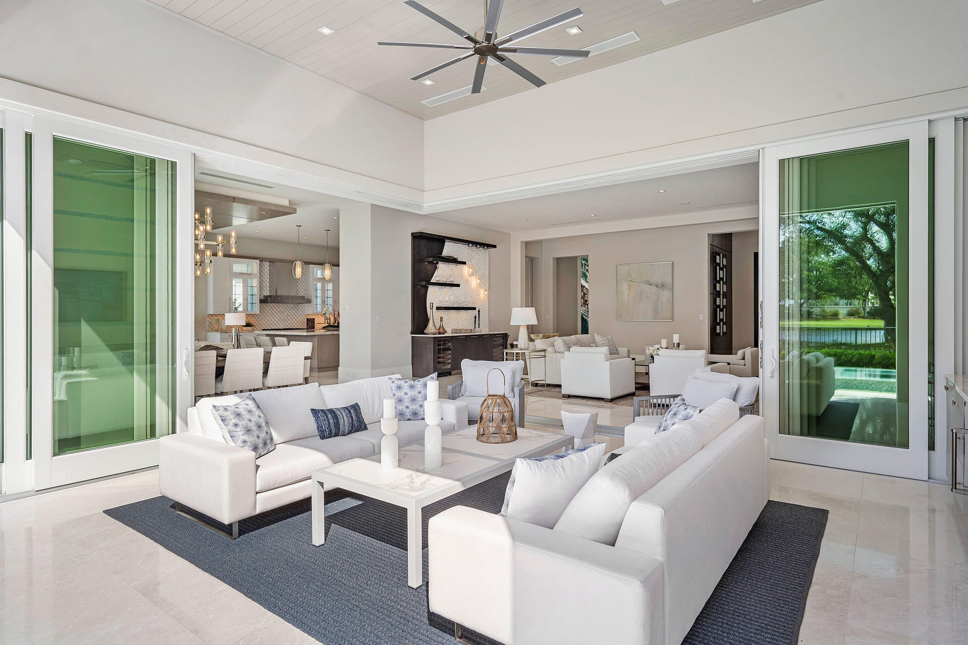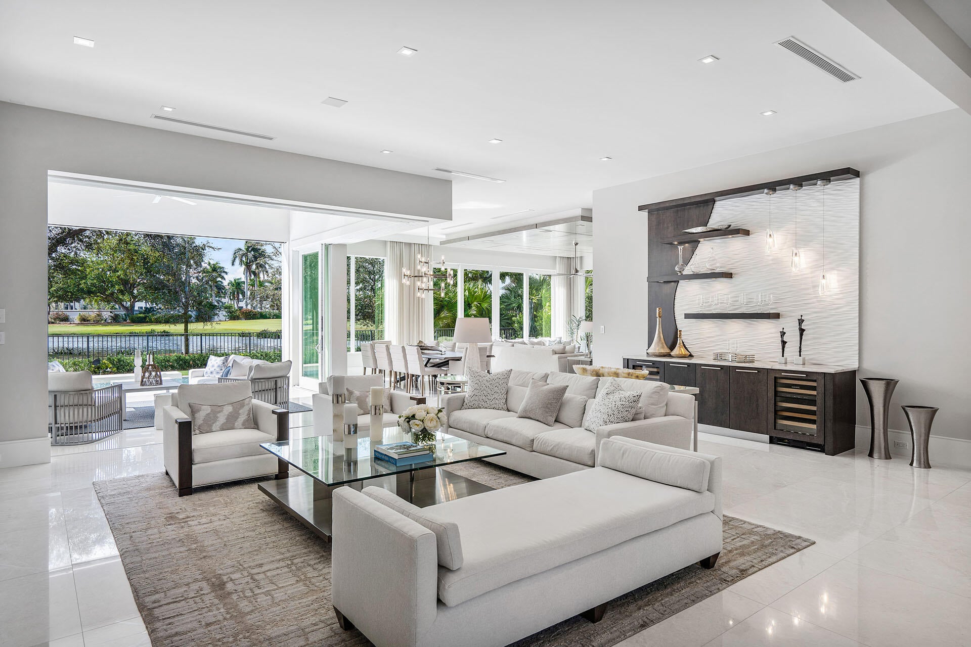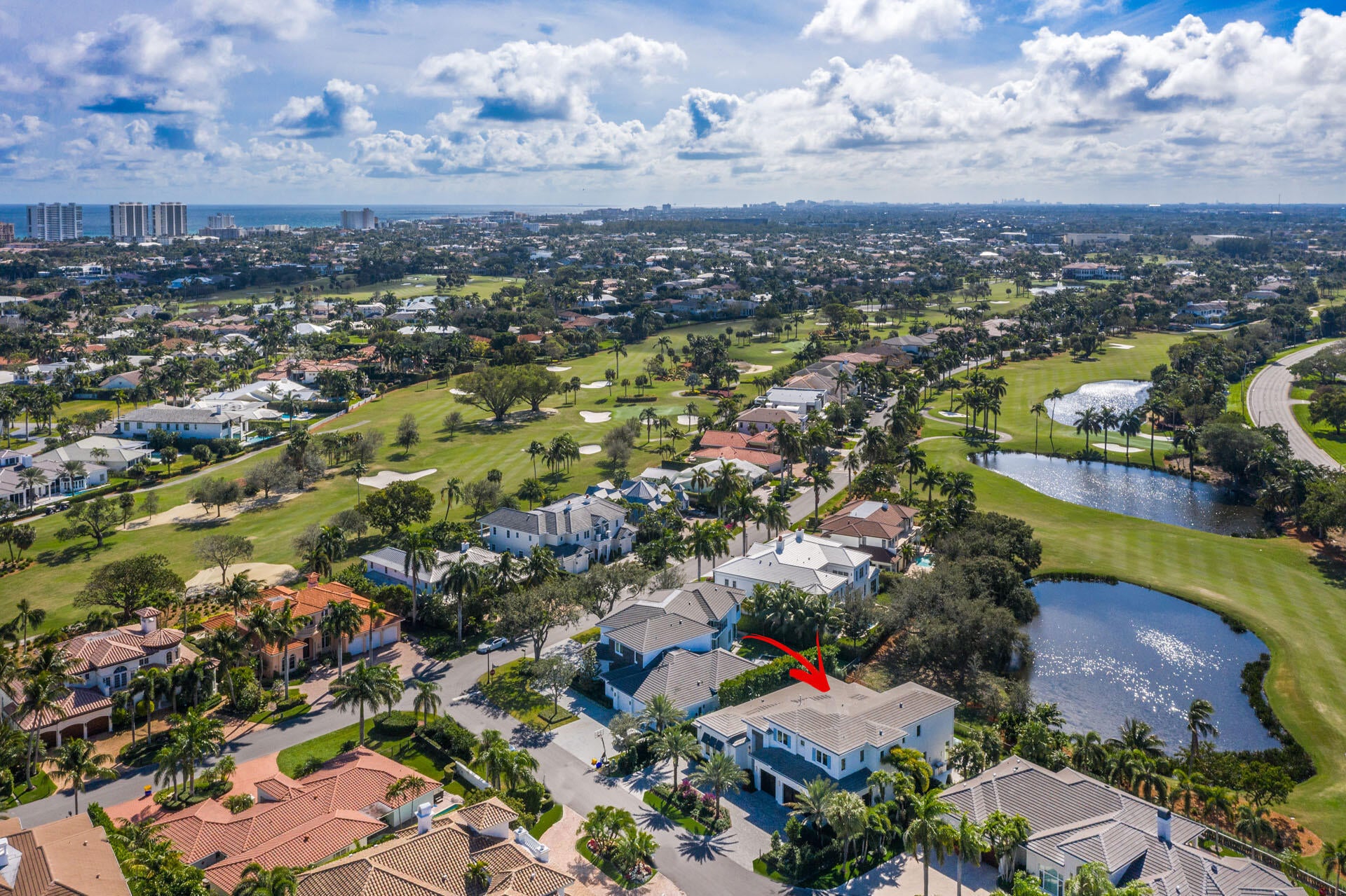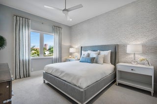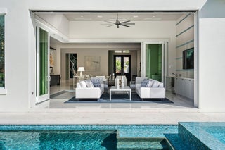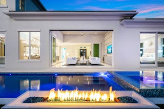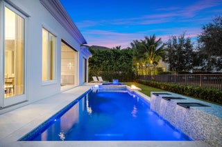 Built by Bloomfield Construction in 2019, 148 Thatch Palm Cove offers an exceptional blend of modern luxury and golf course tranquility. Positioned on a quiet cul-de-sac of just seven residences, the home overlooks the 5th hole of the Jack Nicklaus Signature course with picturesque lake views.Spanning more than 6,100 square feet, the five-bedroom residence is thoughtfully designed for both comfort and entertaining. The south-facing outdoor retreat features a resort-style pool with spa, elegant fire and water features, a built-in barbecue, and an expansive loggia with motorized phantom and vinyl screens for effortless indoor-outdoor living.Inside, a grand first-floor primary suite includes dual bathrooms and dressing rooms, while additional highlights include dual laundry roomsand a three-car garage plus golf cart bay with space for lifts. Every detail reflects a commitment to refined living in one of Royal Palm's most private settings.