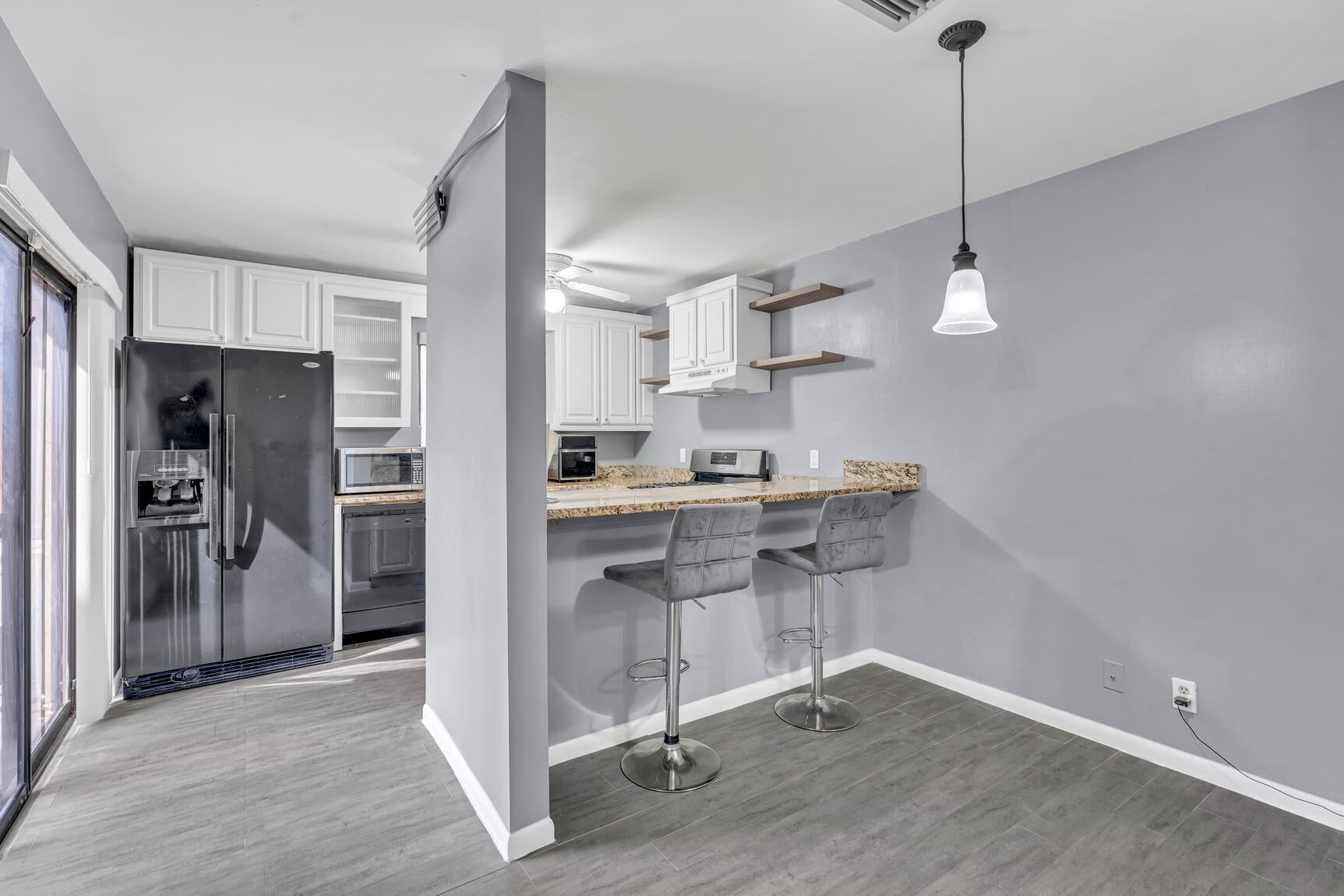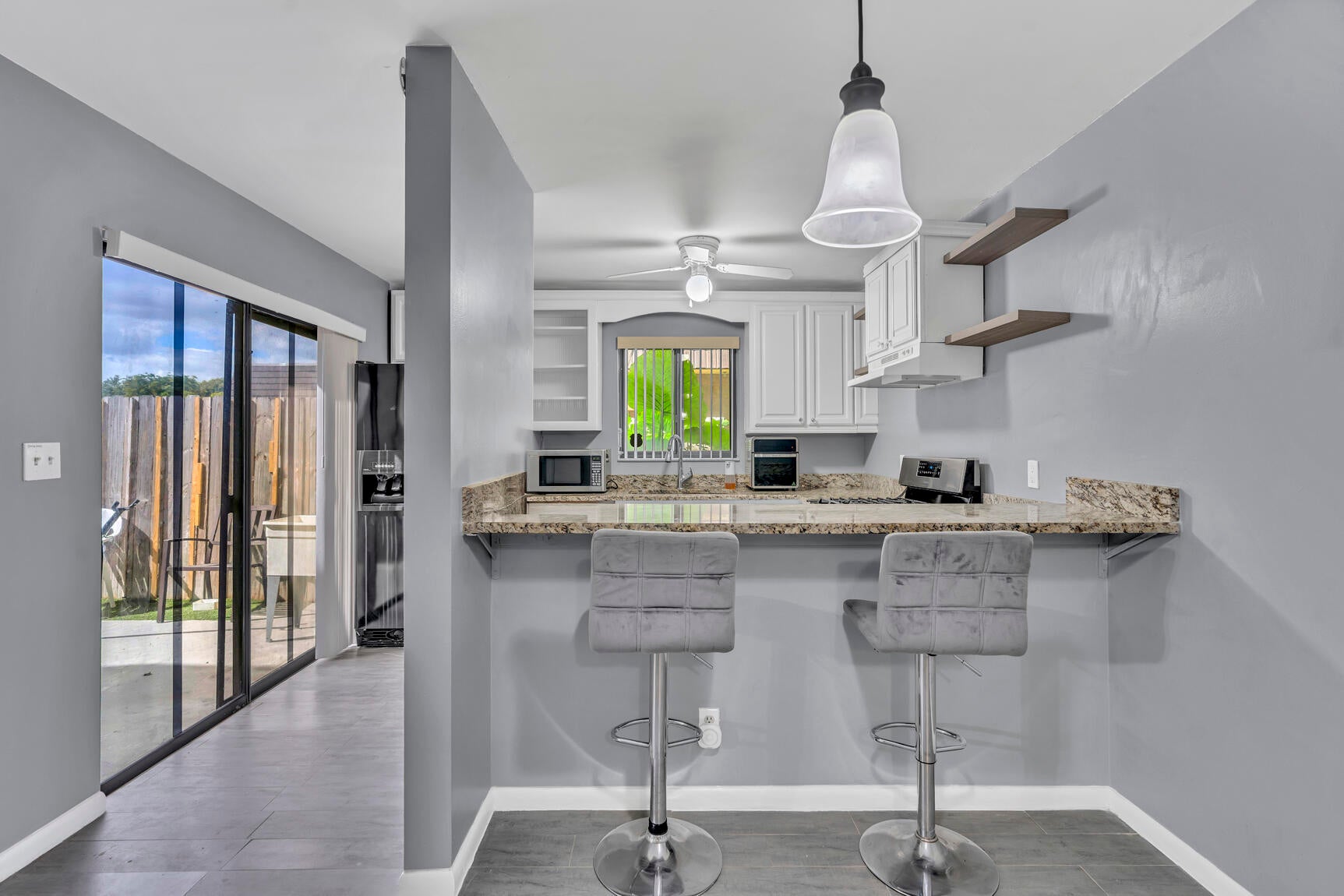 This charming 2 BR 1.5 BA two-story townhome features tile flooring throughout, a kitchen with granite countertops, an in-home laundry room, and a cozy balcony. It comes equipped with accordion shutters upstairs and panel shutters downstairs. Conveniently located near PBI Airport, major highways, Shopping, Downtown, and many more options. This home is ready for you to move in and enjoy.