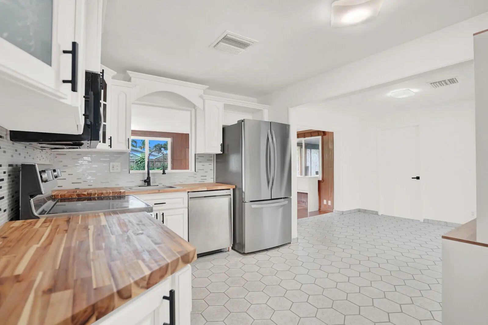 Spectacular 4/2 single family home in a prime Boynton Beach location, just minutes from the beach and major highway. Newly painted and renovated home featuring a beautiful, large fenced yard with fruit trees, 2024 roof, impact windows and brand new plumbing. The open plan kitchen has butcher block counters, stainless steel appliances with a dining area that opens to the family and living rooms. This house offers a mixture of comfort, style and convenience.