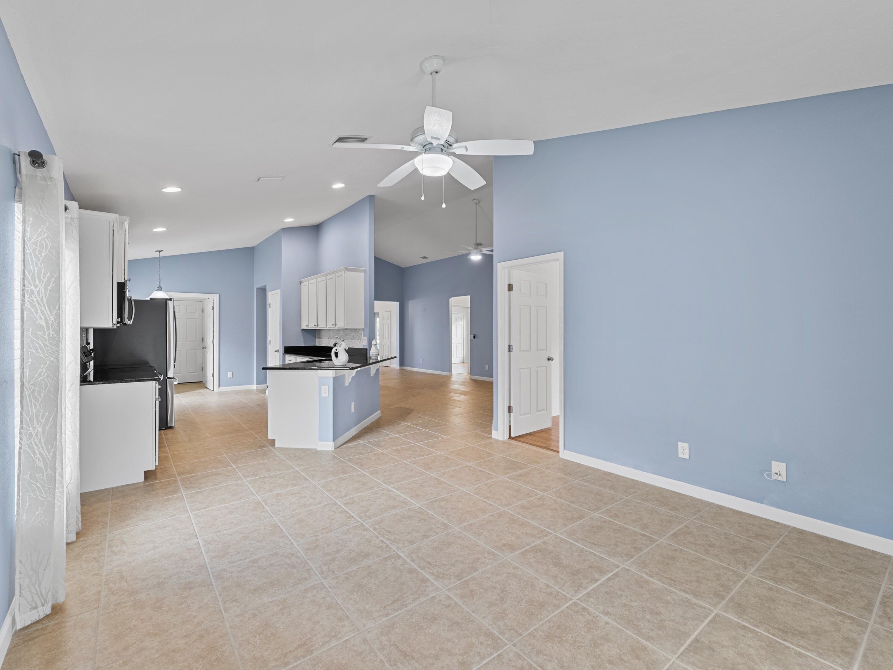 Welcome to this beautifully landscaped 4/2/2 that you have been waiting for, located in the highly sought after gated community of Westfield. LOW HOA with INCLUDED LAWN CARE, 2023 A/C, hurricane shutters & ring security camera! 1935 sq. ft. under air with fenced in backyard, as well as a covered & screened 10x15 ft lanai with Venetian blinds for privacy. The decorative Impact glass front door invites you into this well-maintained home, as the Cathedral ceilings blend the feeling of spaciousness with quality. The home features ceramic tiled common areas with engineered wood plank flooring in all the bedrooms. Kitchen has upgraded crown molding cabinets, pantry, SS appliances, Granite countertops with decorative tile backsplash and a breakfast nook. Primary suite boasts tray ceiling, his & her vanity with matching granite countertop, walk-in shower with grab bars, plus a massive walk-in closet and additional linen closet. 3 spacious guest bedrooms split into 2 separate areas. Front bedroom is currently being used as an office/study. Guest bathroom features matching granite countertop with shower tub combo. Indoor laundry room has cabinets for extra storage! Are you a frequent golfer? Pointe West Country Club is a quick golf cart ride away with both full golf and social memberships available to fit your lifestyle needs.