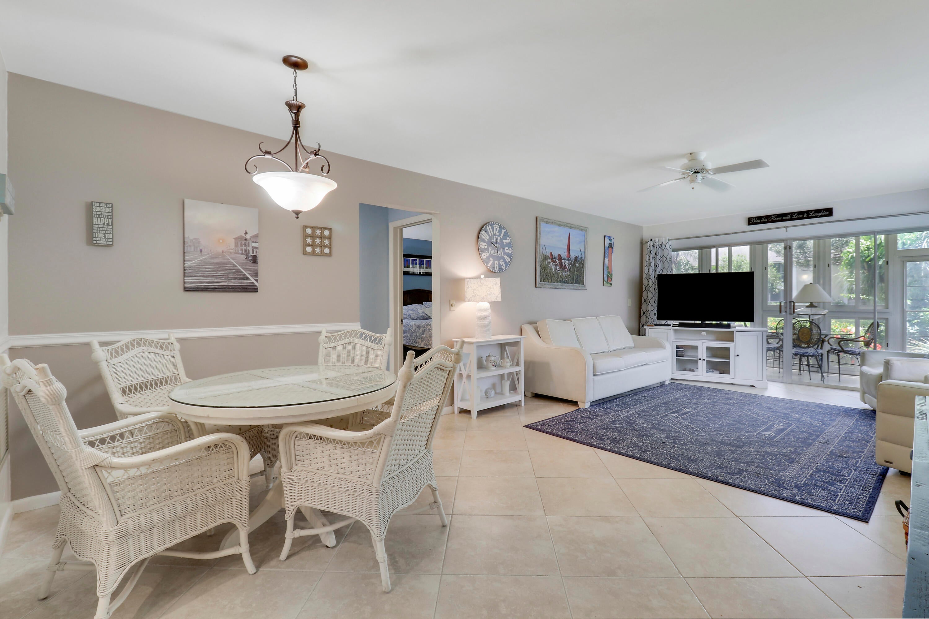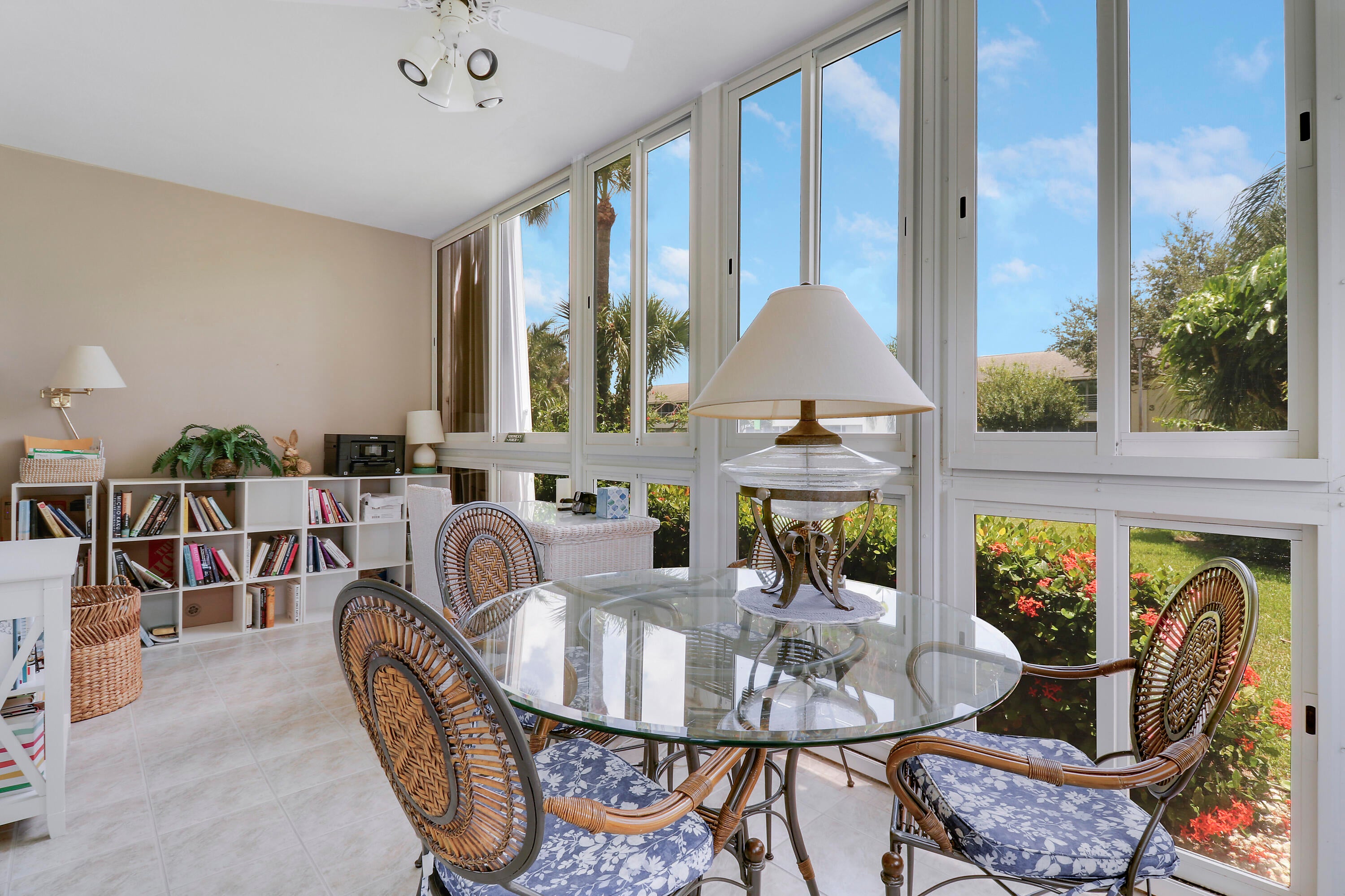 Renovated ground-floor end unit in the sought-after Tequesta Gardens community. This light-filled 2-bedroom, 2-bath condo features an updated kitchen, new roof, newer A/C, and a newer electrical panel. The spacious living area opens to a bright enclosed porch, perfect for relaxing or entertaining year-round. Both bedrooms are generously sized, with abundant storage and a walk-in closet in the primary suite. Residents enjoy exceptional amenities including two pools, a putting green, shuffleboard, and a clubhouse with a full kitchen and BBQ area. Ideally located within walking distance to coffee shops, restaurants, and shopping. Monthly dues include basic cable, water, sewer, exterior maintenance, and insurance.