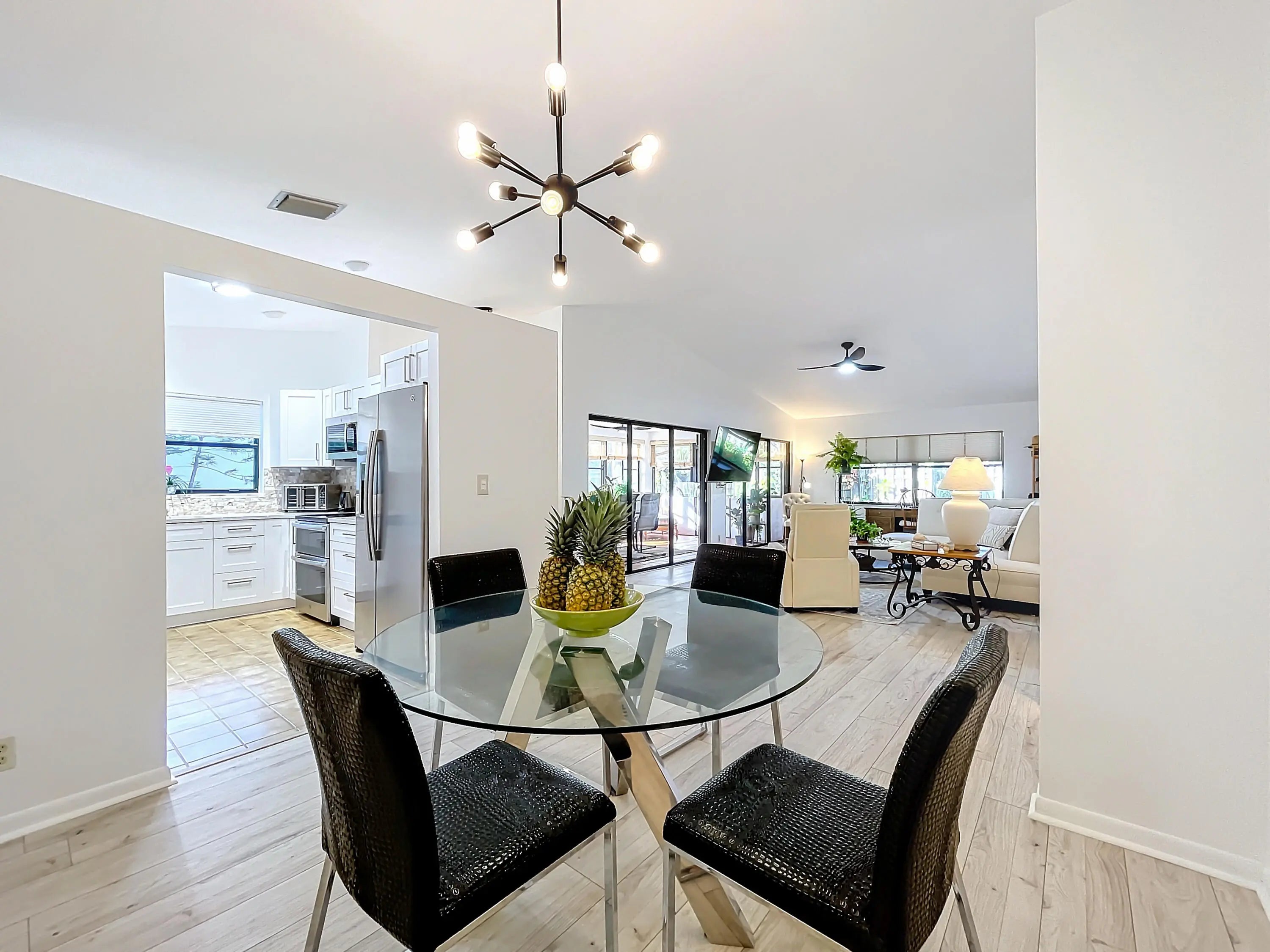Welcome to 56 Baytree Circle--a beautifully updated home in a peaceful community. This move-in-ready residence features light-filled living spaces, engineered wood-style floors, and an open floor plan perfect for entertaining or relaxing. The modern kitchen boasts quartz countertops, new cabinets, and stainless steel appliances. An oversized Florida room off the living area offers flexible space for a second living room, dining area, office, or retreat. Popcorn ceilings have been removed, and the interior has been freshly painted.
