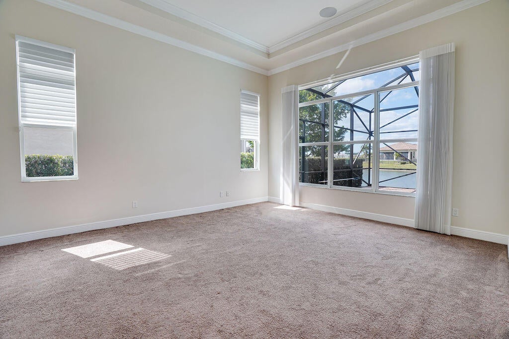 Stunning PGA Verano Pool Home with expansive water views. The open and modern floor plan is perfect for entertaining, with plenty of space to relax and unwind. Key features: Resort style living. Enjoy stunning water views with picturesque sunsets from the pool and spa. 3 car garage accommodates your vehicles and golf cart. Added security with cameras around the home for peace of mind. Crown molding and electric blinds. Close proximity to cart path to the PGA Golf Courses. Experience the ultimate in resort style living!
