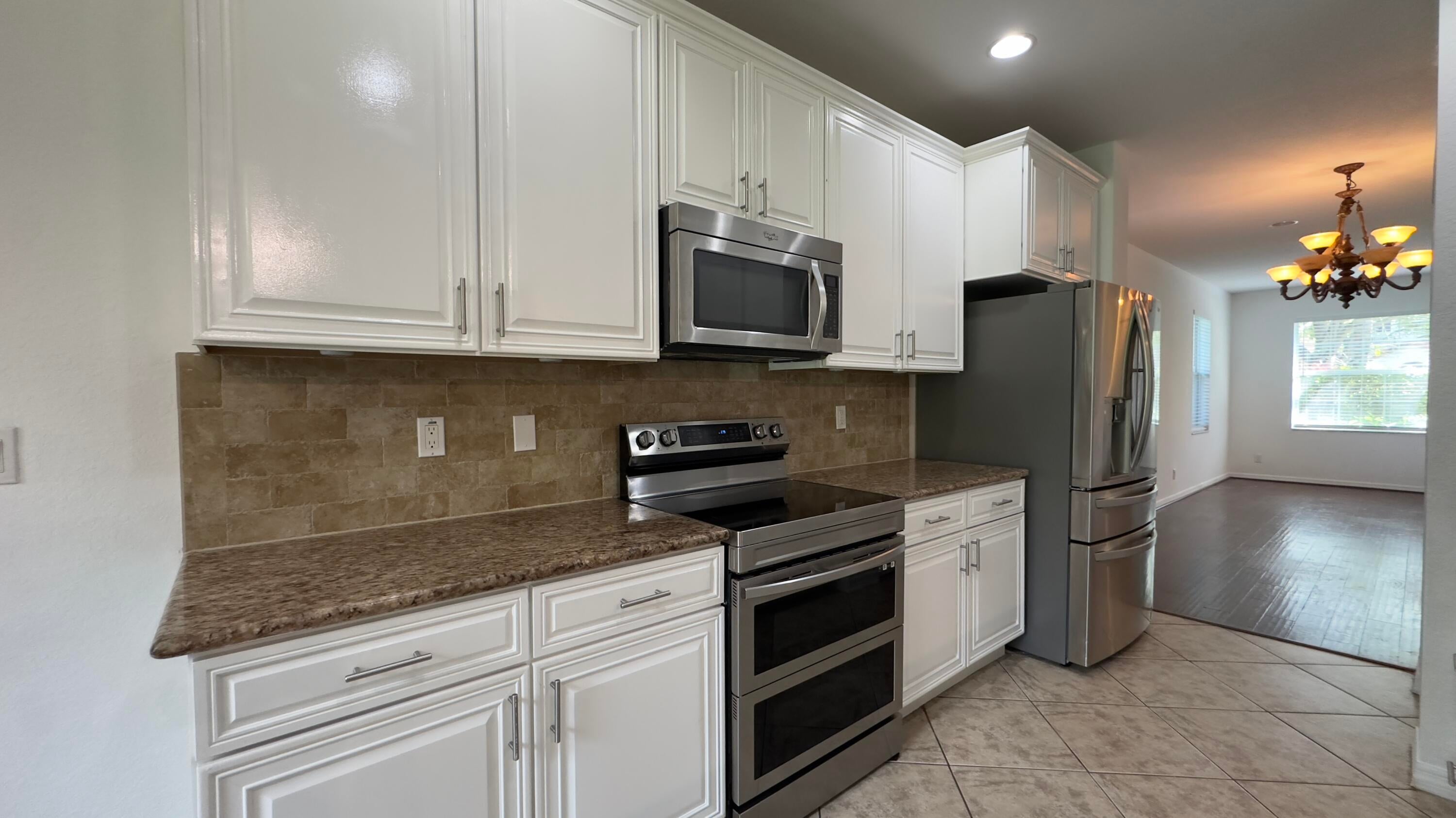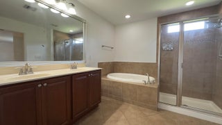 OAKMONT ESTATES SINGLE FAMILY FIVE BEDROOM THREE BATH TWO CAR GARAGE HOME WITH 3097 SQ FT. WOOD FLOORING THROUGHOUT. OPEN KITCHEN TO LIVING / DINING AREA. KITCHEN FEATURES GRANITE COUNTERTOPS WHITE CABINETS STAINLESS APPLIANCES AND BREAKFAST NOOK. FRENCH DOORS TO OPEN COVERED PATIO WITH LARGE BACKYARD. FIRST FLOOR BATH AND BEDROOM. MASTER ENSUITE WITH WALK IN SHOWER SEPARATE TUB AND WALK IN CLOSET. AMENITIES INCLUDE GATED ENTRANCE POOL / SPA TENNIS CLUBHOUSE FITNESS CENTER AND PLAYGROUND. PET FRIENDLY! The main bathroom features a jacuzzi tub & spa-like ambiance with a large shower & enormous walking closet. The home features a bonus office room with built-in cabinets. The home also features a 3rd living room on the 2nd floor. The 2nd floor features 4 large bedrooms with all walking closets. The previous seller added a patio roof extension with automatic up and down enclosed screens and doors to cover the whole patio. The screened patio provides a tranquil outdoor space, ideal for unwinding or entertaining guests. The home also features a 6-sitter hot tub and a saltwater heated pool. The lot is huge and very private. This pet-friendly exclusive community has a clubhouse, pool, tennis court, gym, game room and so much more. Experience the epitome of gracious living in this exquisite property in Oakmont estates.