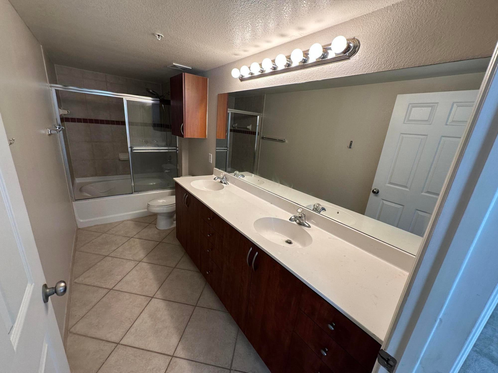 Brand new LVP flooring just installed in all bedrooms. NO CARPET AT ALL. Water and basic cable included. 1 car garage attached to the building. 3 bedrooms. Laundry in unit. Villas at Emerald Dunes is a gated community with excellent amenities. Kitchen has granite counters, light cabinets, backsplash, and stainless steel appliances. Full sized washer and dryer included in the unit. Nice balcony for relaxing. Impact windows is a huge plus. for energy efficiency and noise, plus no one is above you. Top-notch amenities like a resort-style pool, fitness center, and tennis courts.