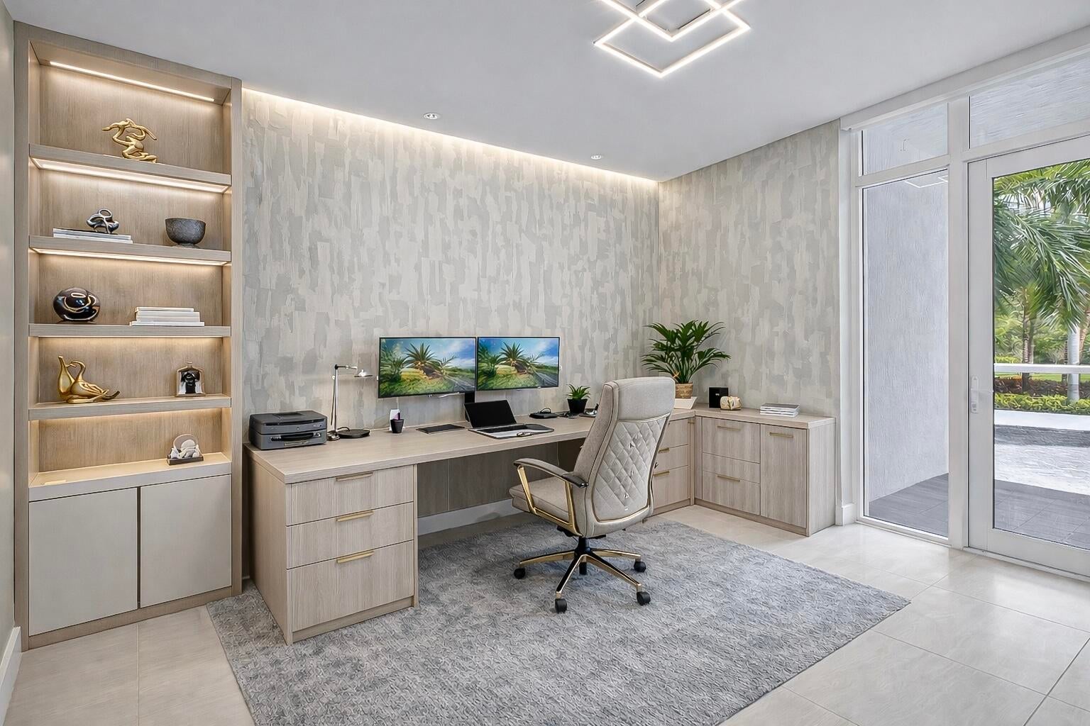Dazzling golf and sparkling lake views await in this stunning 2-bedroom plus den, 2.5-bath residence in the luxurious Akoya complex. This sophisticated home features elegant porcelain tile floors, window treatments, a custom-built designer office in the den, and fully customized closets throughout.Floor-to-ceiling impact windows showcase breathtaking panoramic views of the golf course and lake, opening onto two expansive terraces that capture both soft morning light and dramatic evening sunsets.Residents enjoy world-class amenities, including two garage spaces, a private storage room, a card room, a state-of-the-art fitness center, spacious social and living areas, a mini boardroom, 24-hour concierge service, and valet parkinga"all designed to elevate your everyday living.