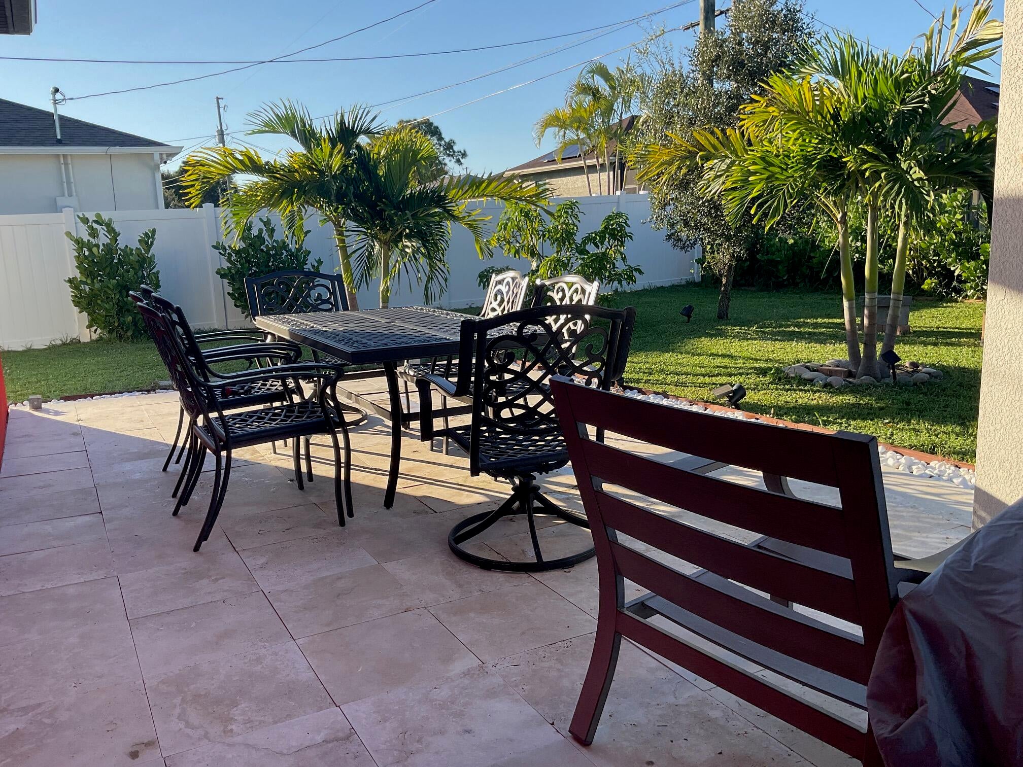 Don't miss out on one of the best values in South Florida! This luxurious, exceptionally maintained, practically NEW 4BR home total is 2324 Sqft, is available due to the owner's job relocation and showcases over $150,000 in recent upgrades. Enjoy a gourmet kitchen with granite countertops, stainless steel appliances, and a smart home system. Security system with cameras included. $55K solar panels reduce power bills to about $28/month. Outdoor oasis features a $30K new 456 sq. ft. Travertine patio and $28K in lush landscaping with mature palms, sprinkler, and irrigation. Peace of mind Impact windows, $10K new plantation shutters, $15K custom paint, new fence, shed, and new washer/dryer complete this move-in-ready gem. With its premium features this home won't last long.