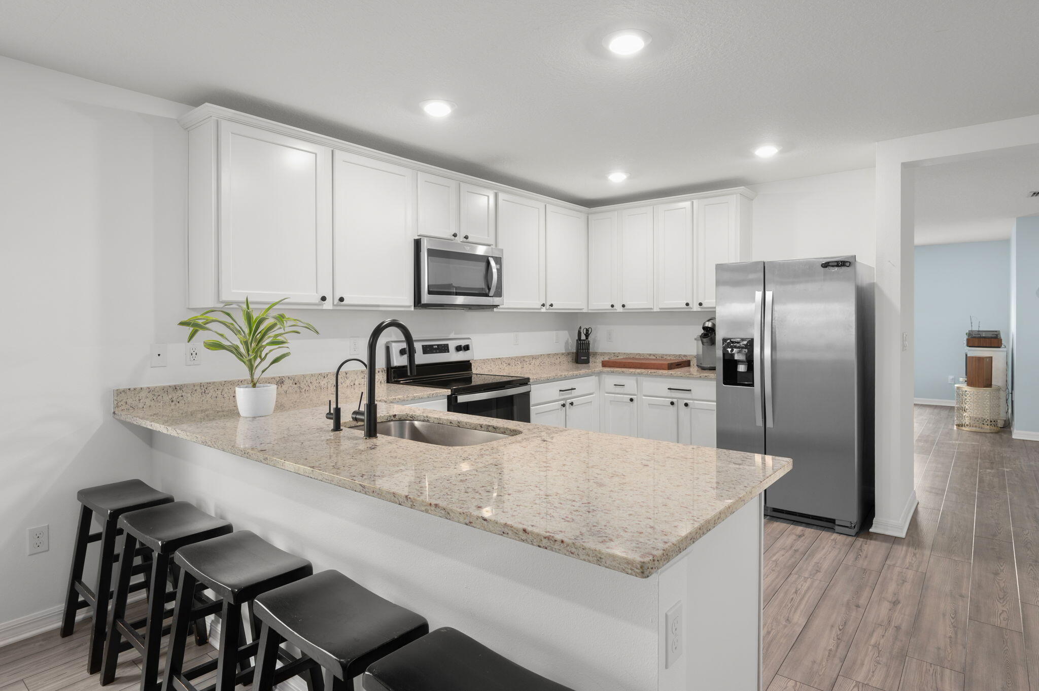 Beautiful 4-Bedroom Home with Huge Private Yard and Outdoor Bar!Welcome to this stunning 4-bedroom, 2-bath home built in 2023, offering modern design and exceptional upgrades throughout. The open-concept layout features a spacious living area with tile flooring (carpet in only one bedroom), and plenty of natural light.The kitchen seamlessly flows into the living perfect for entertaining or family gatherings. Step outside to your expansive PRIVATE fenced yard with a screened-in porch complete with a full bar and comfortable sitting area -- your own private retreat for relaxing or hosting guests.Additional highlights include a two-car garage, upgraded finishes, and meticulous attention to detail. This home truly has it all move-in ready and sure to impress even the pickiest buyers!
