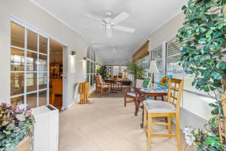 Celebrate the sunny Florida lifestyle and retirement living in this beautiful lakefront home in the Savanna Club 55+ community. Home offers over 1900 sf of living in a desirable split plan with 2 spacious bedrooms, 2 baths, a den/office or hobby room and a large garage with a side garage door for storing the included golf cart. The open layout features a large kitchen with island and bar seating and ideal for entertaining along with a breakfast nook area, a large living room and a formal dining room area. Soak up the sunsets on the 40' ac'd lanai with lake views. Home has Whole house water filtration system, cost saver irrigation well and more. Home is sold furnished with golf cart and generator. All measurements approximate, buyer to verify. Land Lease Property.
