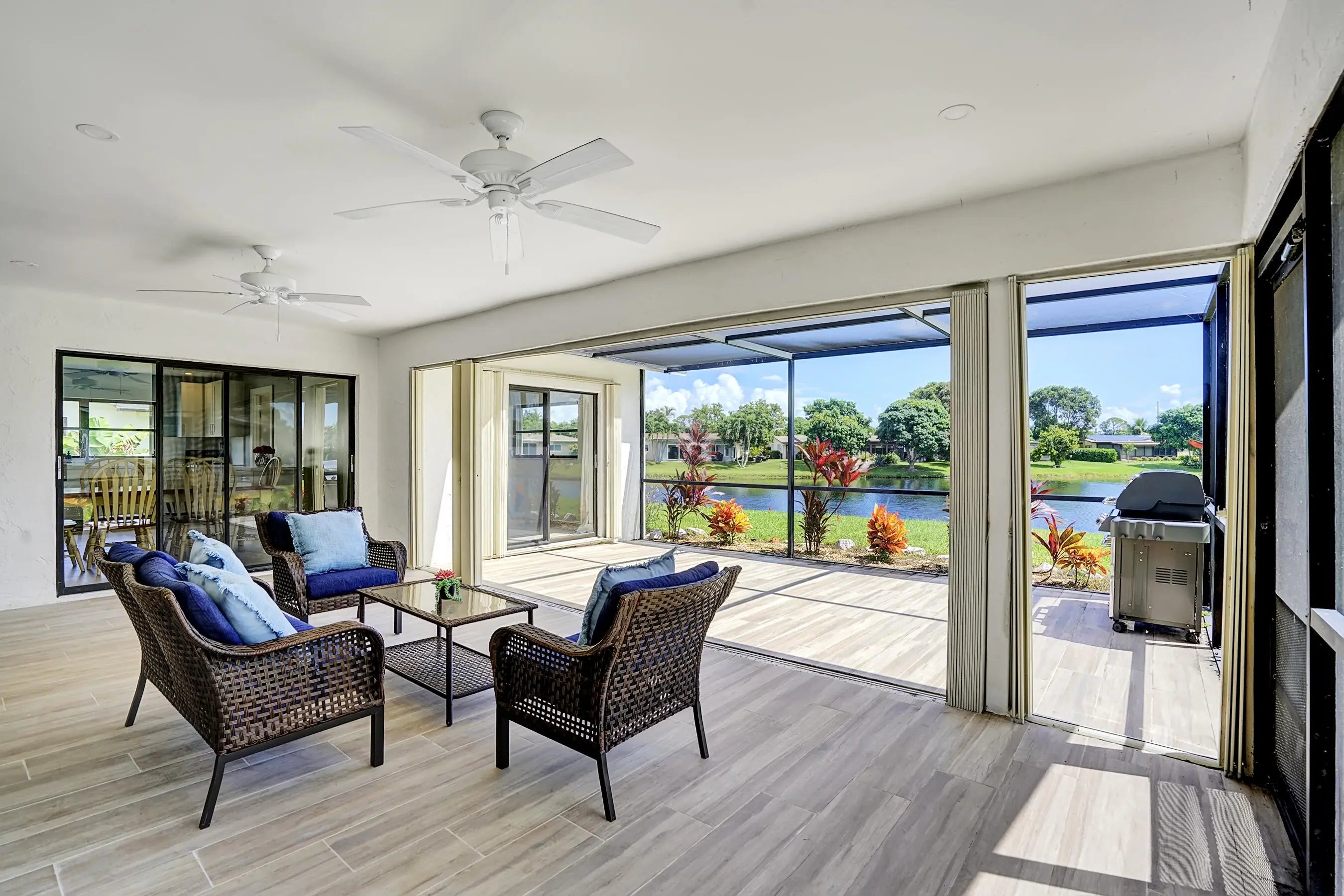 Available off season only. The perfect rental to call home! This beautifully decorated and renovated 2-bedroom 2 bath home offers a spacious, open floor plan that is perfect for entertaining friends and family. You will enjoy cooking in the gorgeous well-equipped kitchen that has lots of counterspace. This home has a spectacular view of the lake that can be seen from both bedrooms and the family room. Relax on expansive, enclosed in patio and enjoy your morning coffee or a glass of wine at the end of the day. Fully stocked with everything you will need, just bring your personal items. Cocco Woods Lakes is a 55+ community that has great amenities including a pool, fitness center, game room. LOCATION! LOCATION! This house is short drive to all Delray has to offer.