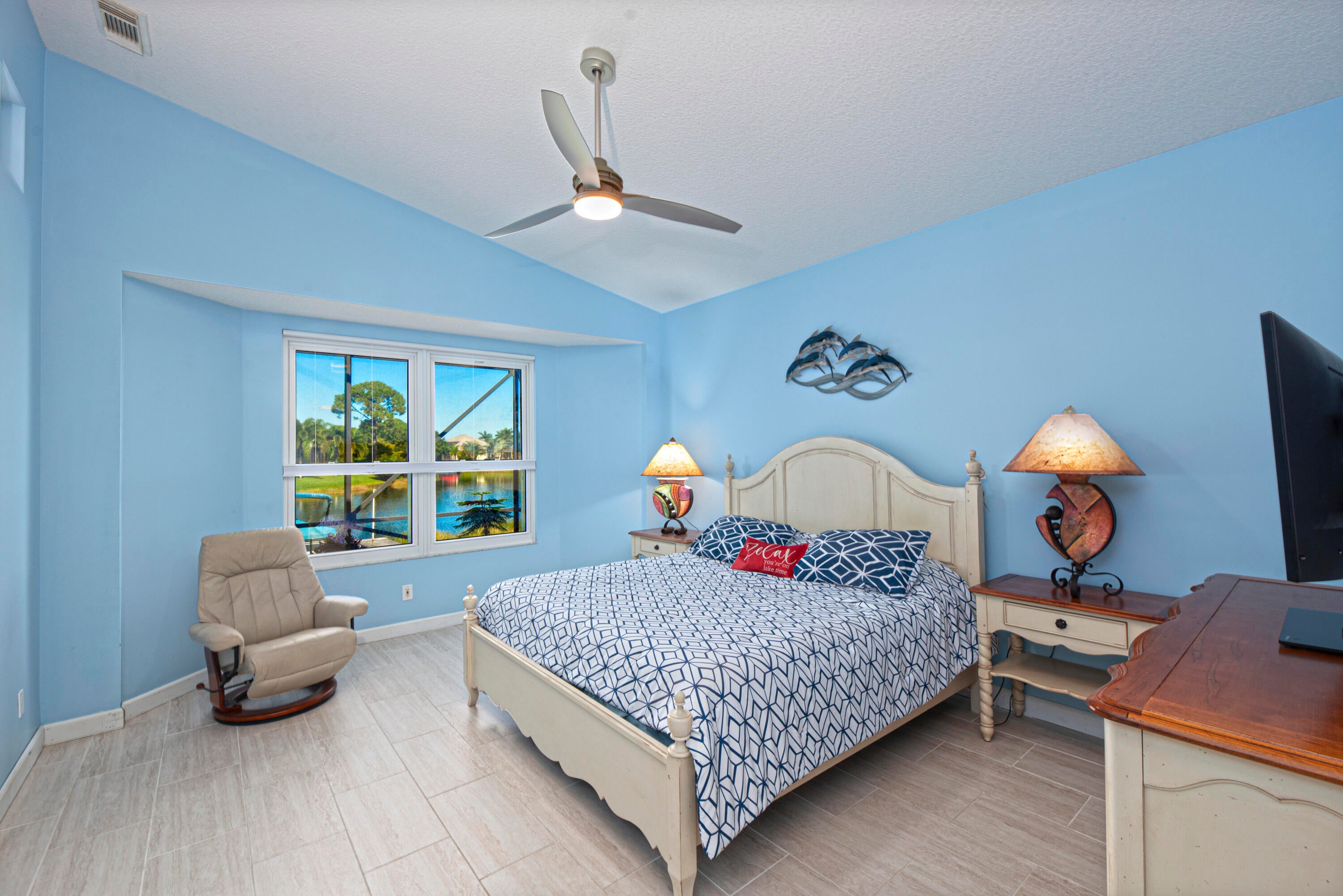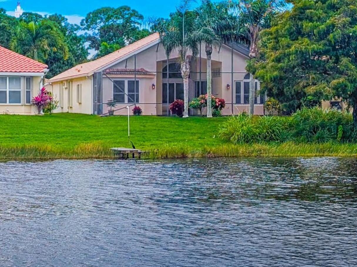 Spectacular WATERFRONT dream home on Lake Charles...A lake you can use...fishing, boating, kayaking, and canoeing all from your own dock! This beautiful four-bedroom, two-bath residence features a remodeled kitchen with quartz countertops, 42'' cabinets and under counter lights. Even the dining nook has breathtaking panoramic lake views. The luxurious primary suite boasts a remodeled bathroom with an oversized double shower, double vanities, and quartz countertops. The two-car garage offers ample storage with multiple storage cabinets.The extended lanai, with a northern exposure, is a great place to enjoy morning coffee and a serene evening, all while you view the abundant wildlife.For peace of mind, the home is equipped with hurricane-proof glass sliders and shutters. The laundry room doubles as a safe room, and there's a whole house water filter system. Located in Lake Charles, enjoy 500 acres of preserve, manned security, a clubhouse with a heated pool, and a variety of recreational amenities like pickleball, tennis, bocce, basketball, and picnic areas. Plus, you're conveniently close to St. Lucie West's shopping and dining and the NY Mets spring training facility. Don't miss out on this exceptional lakefront property.