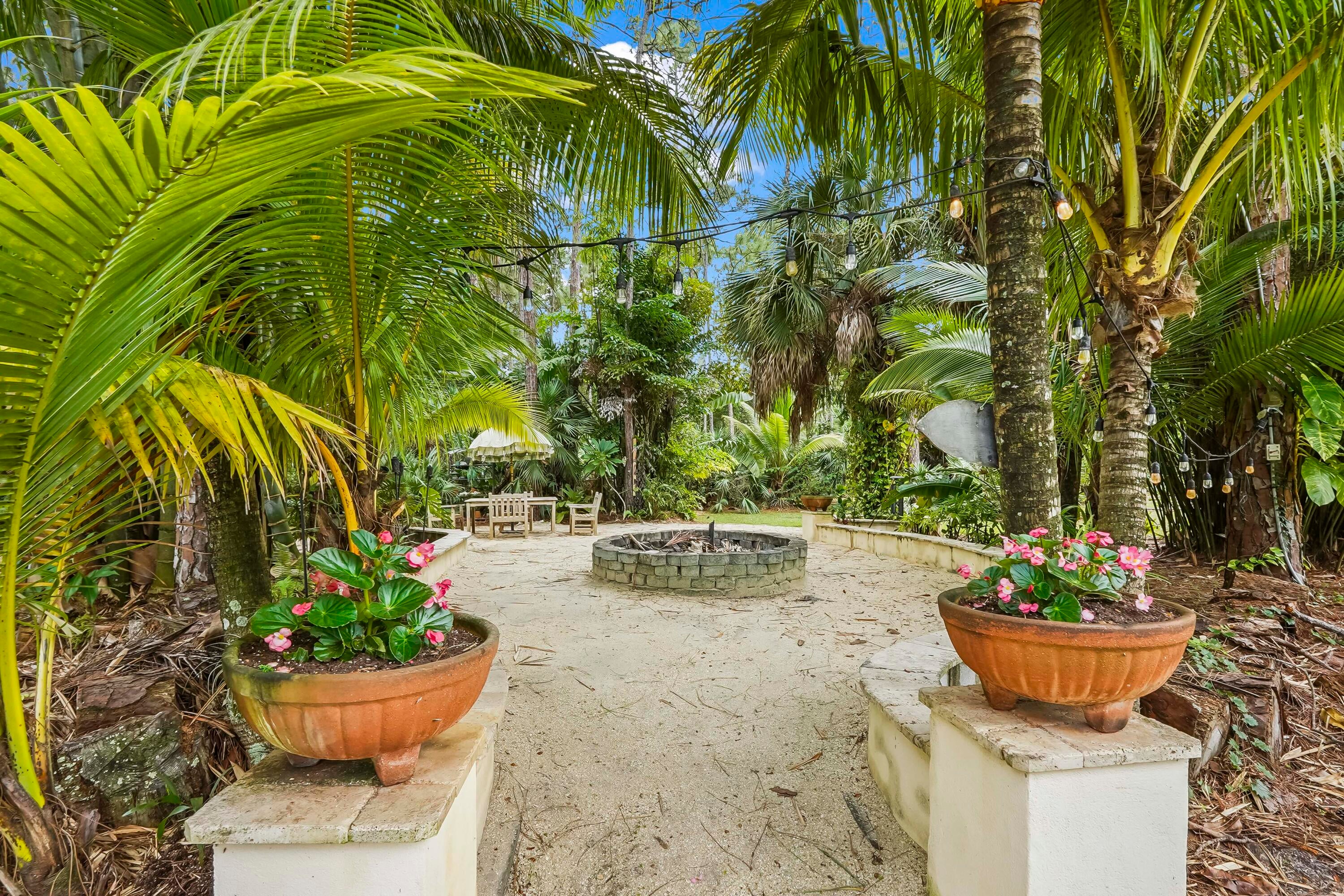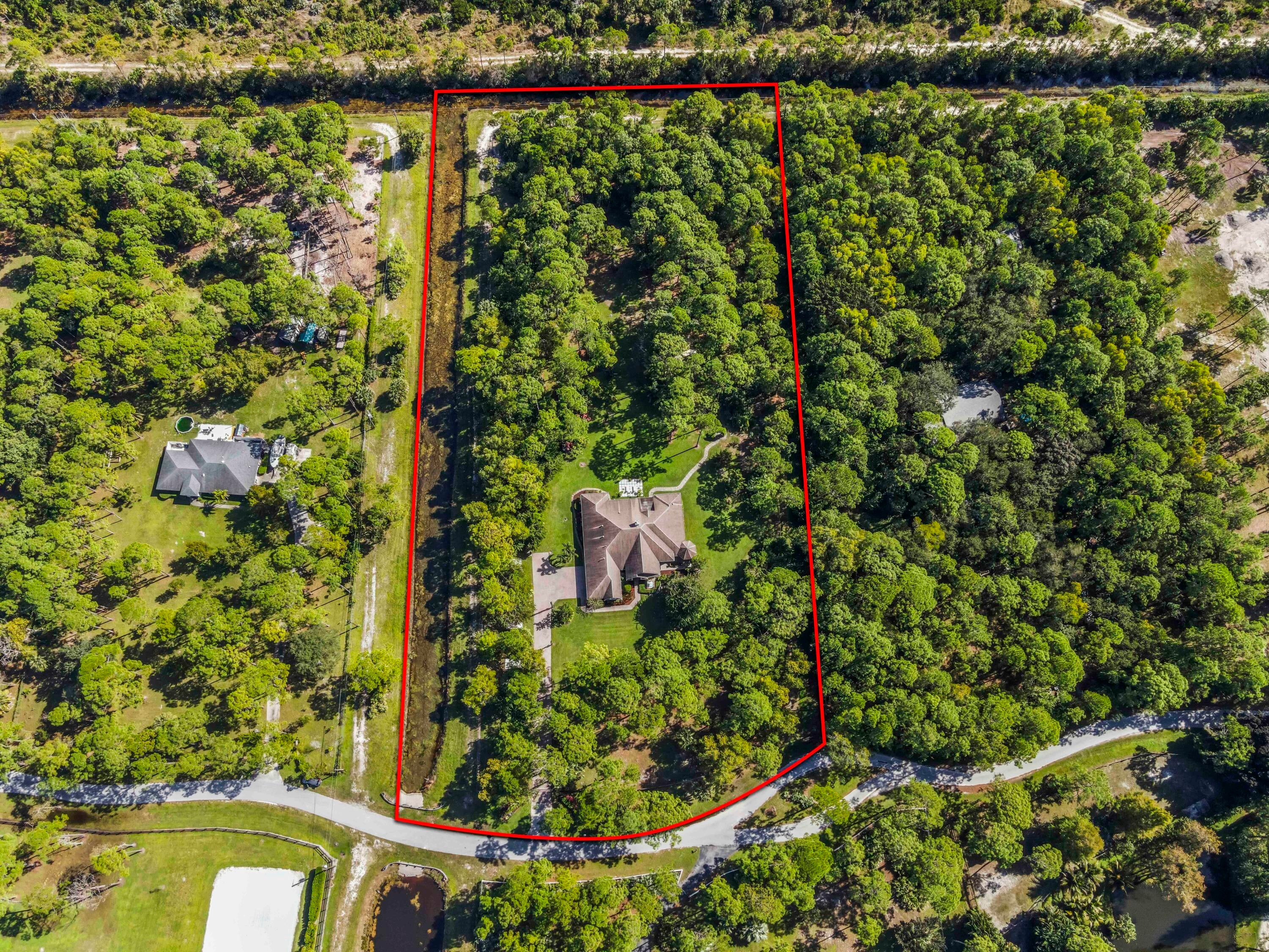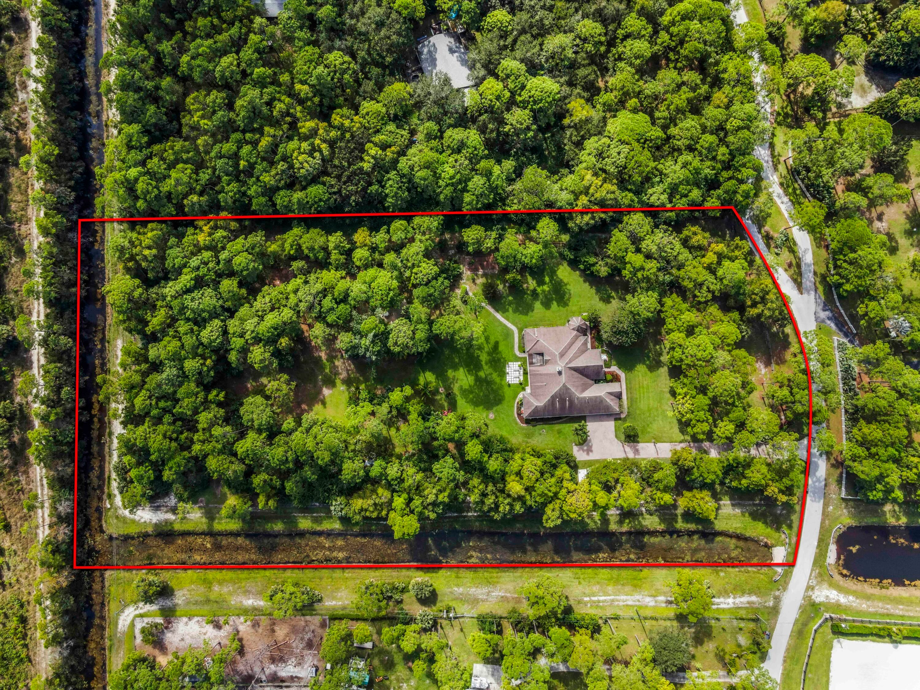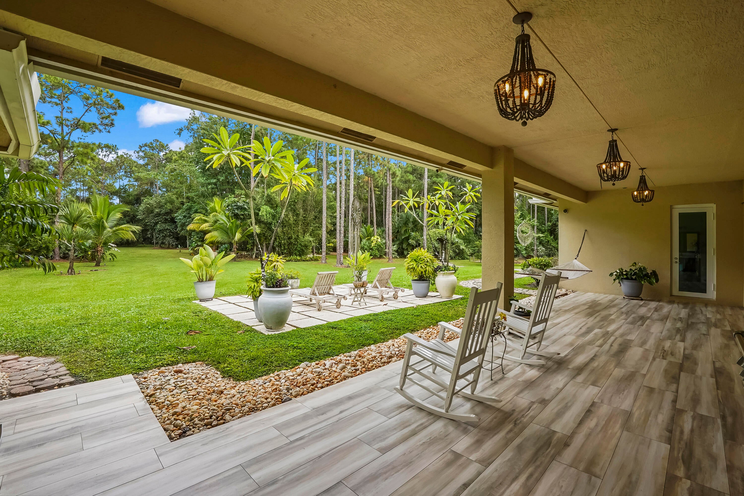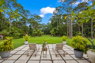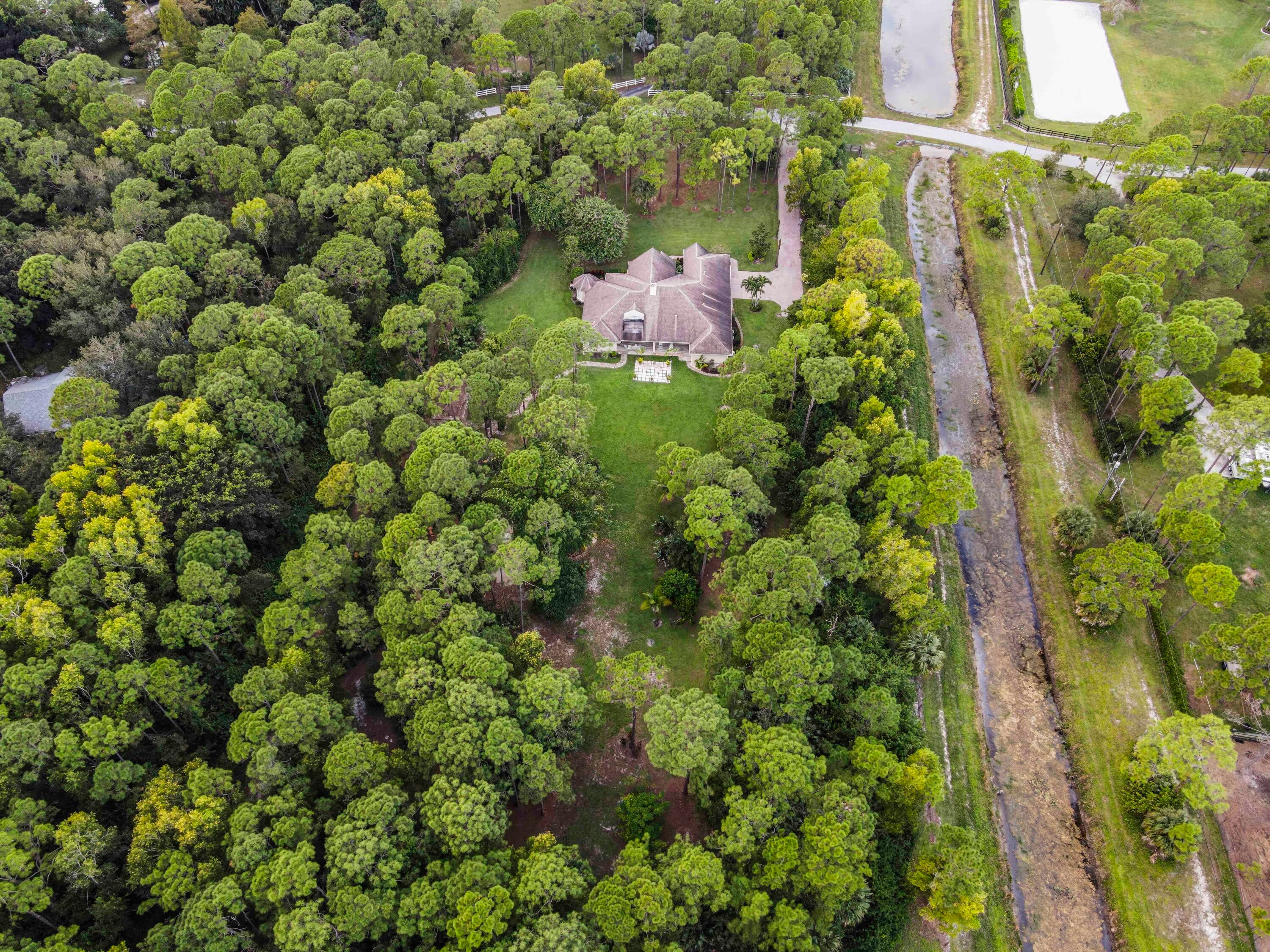 Prepare to be captivated by this custom-built retreat, a stunning estate home situated on 5.19 luscious tropical acres in Caloosa, one of Palm Beach County's most desirable equestrian communities. Offering an unmatched blend of privacy and luxury, the grounds are fully fenced and gated, with a long paver driveway leading to the expansive 5,520 square foot home.Step inside and be greeted by sophisticated design and functional elegance. The spacious floor plan features 4 bedrooms plus a den/office, 3 full bathrooms & 1 half bathroom. Architectural elegance abounds with crown molding and dramatic beamed ceilings extending through the family room, living room, kitchen, laundry room, and halls. The recently updated, spacious kitchen is a chef's delight, boasting a center island and a casual dining area, seamlessly connected to the family room by a unique two-sided stone fireplace. The Master Suite is a true sanctuary, complete with luxurious finishes and a private seating area. This home offers true peace of mind and modern convenience. It is secured with impact glass, and both A/C units were recently replaced in 2023. The laundry room was recently remodeled with washer and dryer units, and the home features an oversized three-car garage. Living in Caloosa means embracing a premier equestrian and nature-focused lifestyle. The community offers 30 miles of winding bridle paths and waterways, along with an official riding pen, arena, obstacle and jumper courses, tennis, pickleball, basketball courts, and a picnic area.