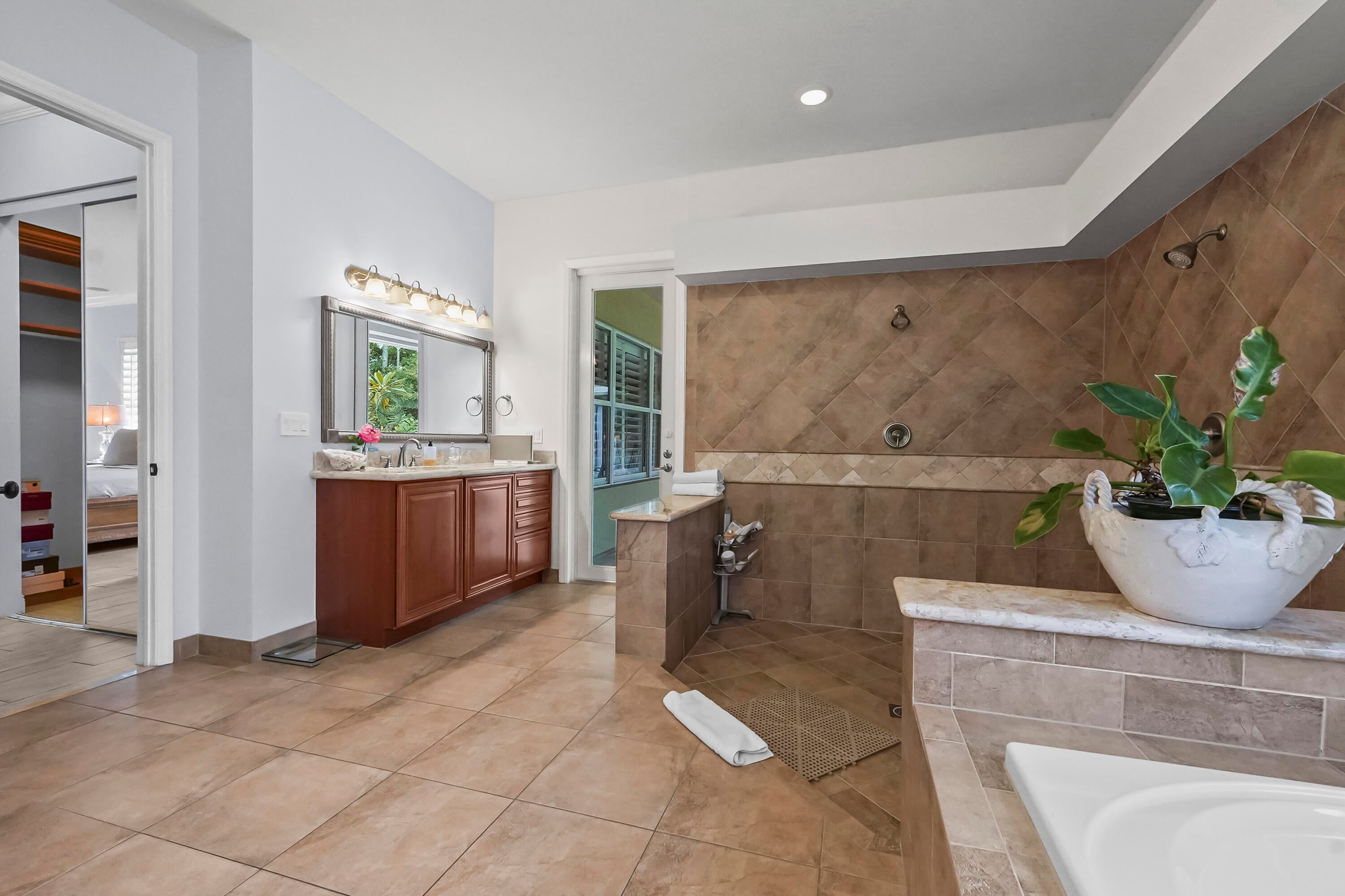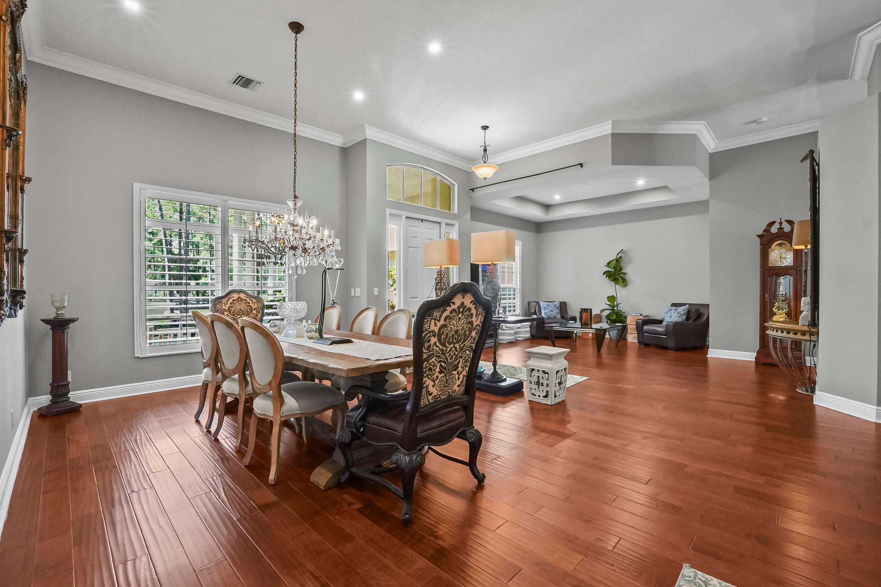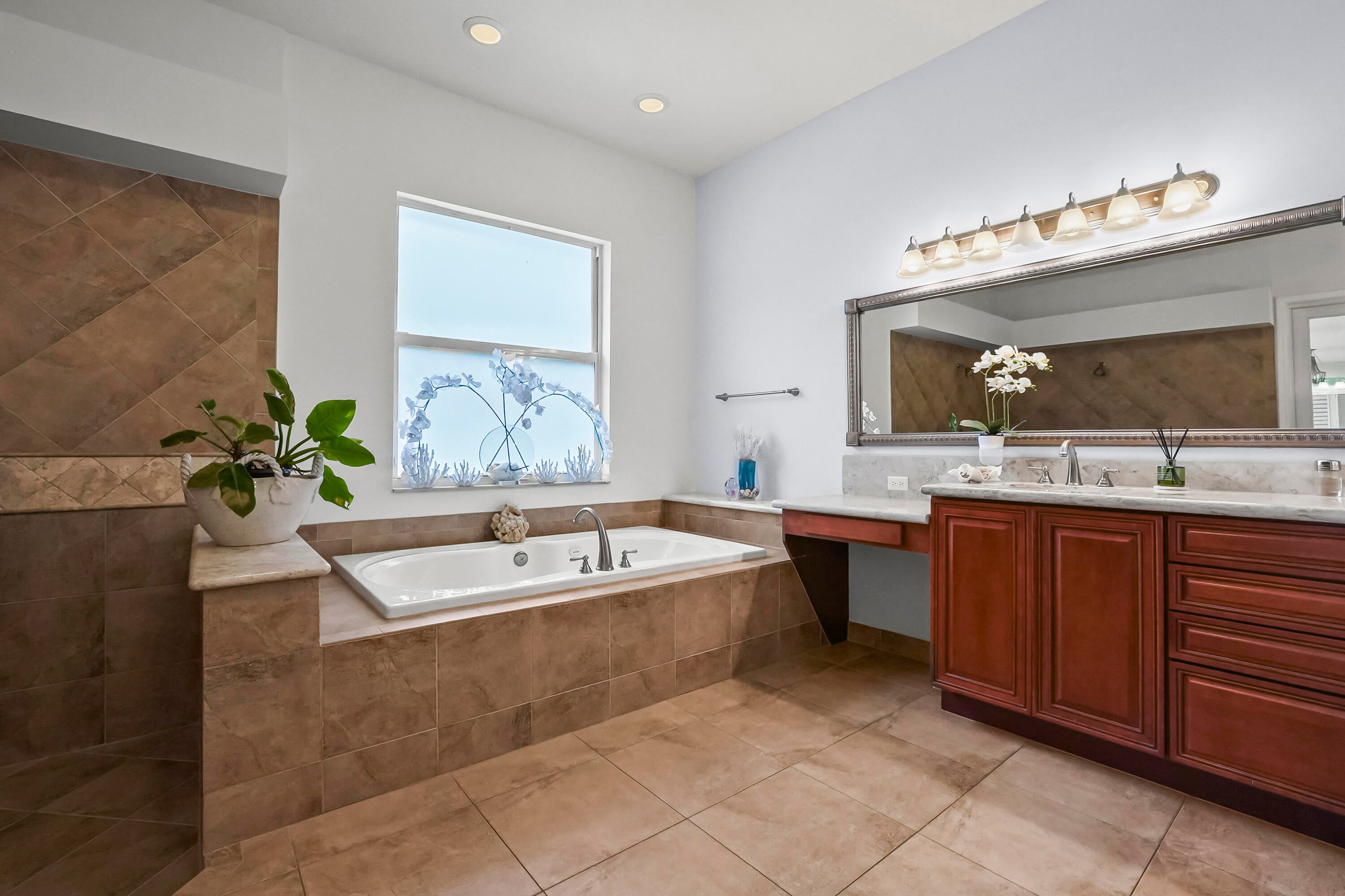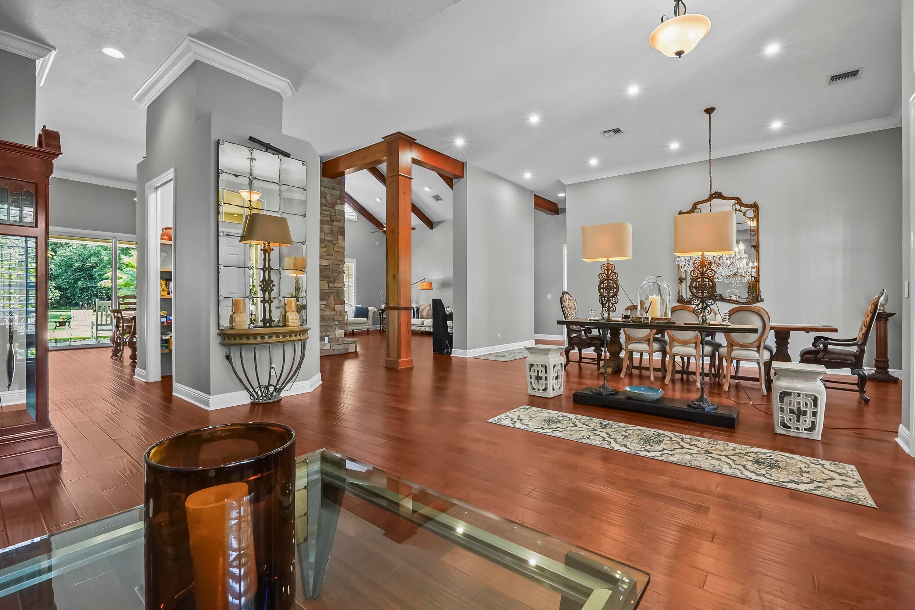 Prepare to be captivated by this custom-built retreat, a stunning estate home situated on 5.19 luscious tropical acres in Caloosa, one of Palm Beach County's most desirable equestrian communities. Offering an unmatched blend of privacy and luxury, the grounds are fully fenced and gated, with a long paver driveway leading to the expansive 5,520 square foot home.Step inside and be greeted by sophisticated design and functional elegance. The spacious floor plan features 4 bedrooms plus a den/office, 3 full bathrooms & 1 half bathroom. Architectural elegance abounds with crown molding and dramatic beamed ceilings extending through the family room, living room, kitchen, laundry room, and halls. The recently updated, spacious kitchen is a chef's delight, boasting a center island and a casual dining area, seamlessly connected to the family room by a unique two-sided stone fireplace. The Master Suite is a true sanctuary, complete with luxurious finishes and a private seating area. This home offers true peace of mind and modern convenience. It is secured with impact glass, and both A/C units were recently replaced in 2023. The laundry room was recently remodeled with washer and dryer units, and the home features an oversized three-car garage. Living in Caloosa means embracing a premier equestrian and nature-focused lifestyle. The community offers 30 miles of winding bridle paths and waterways, along with an official riding pen, arena, obstacle and jumper courses, tennis, pickleball, basketball courts, and a picnic area.