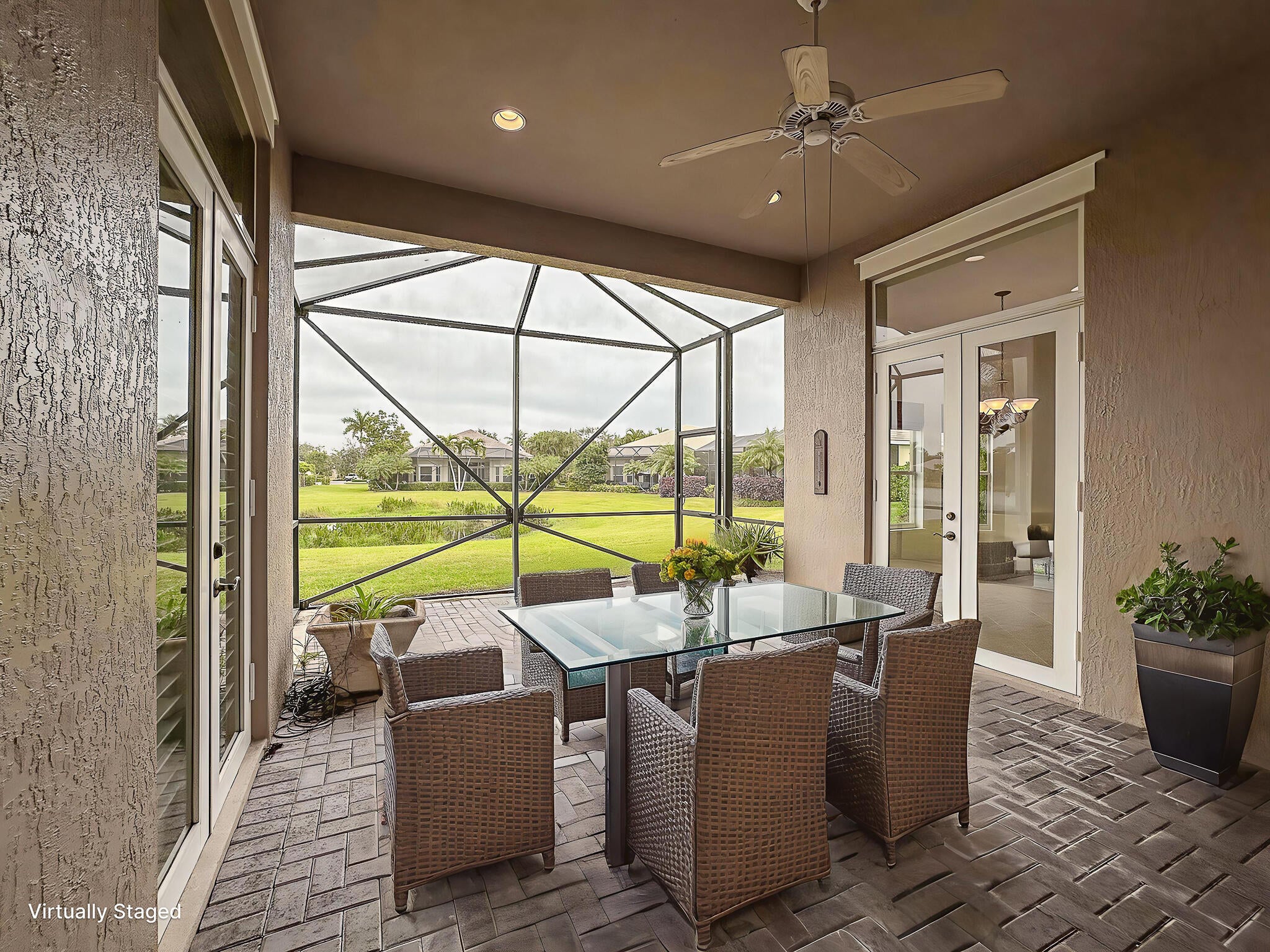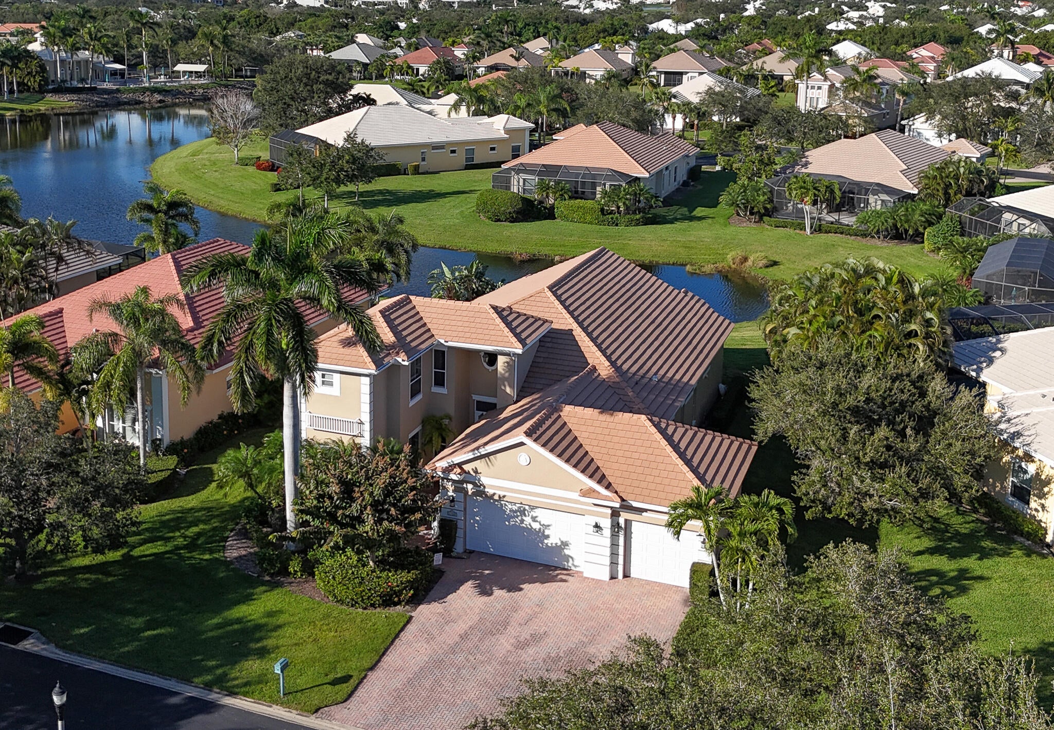 New Roof Coming Soon! Impact Glass! Gated & Secure! Welcome to River Wind, a friendly and social Vero Beach community where life is truly fabulous. This expanded model offers 4 bedrooms, 4 baths, and a 3-car garage. Recently painted and meticulously maintained, the home features high ceilings, crown molding, tile floors, and a chef's kitchen with granite countertops, 42'' designer cabinets, and a center island. Relax on the screened patio overlooking the lake, surrounded by lush tropical landscaping. Enjoy the clubhouse with heated pool and vibrant atmosphere. Listing agent related to owner.