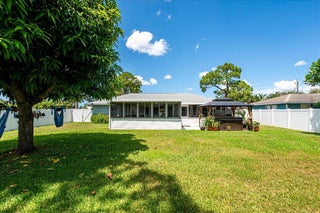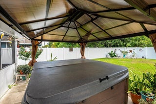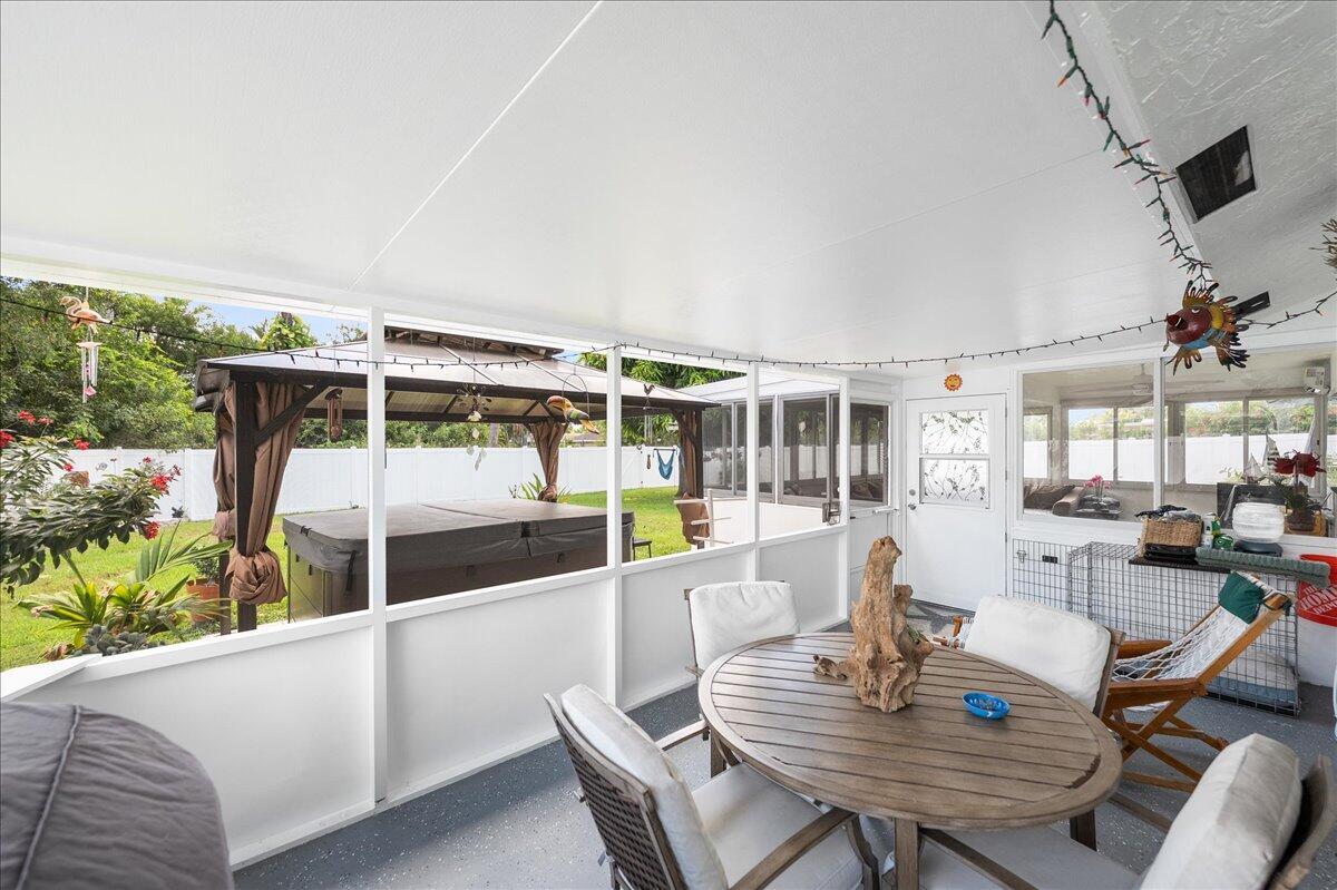 Extra several hundred sq ft not included in square footage with enclosed and air conditioned Florida Room - perfect for home office or extra living area! This well maintained 3 bedroom, 2 bathroom CBS home located on a quiet street near Crosstown parkway offers the perfect balance of serenity and convenience. This home features a new roof, low maintenance tile and vinyl flooring throughout as well as a desirable split floorplan offering privacy and functionality. Oftentimes, with a Florida Room, you lose the porch - not here! Exiting the Florida Room, you are greeted by a generous screened in porch overlooking your lush, fenced in backyard and hot tub! The home backs to a drainage canal for added privacy. This home is conveniently located, immaculately maintained, and loaded with extra