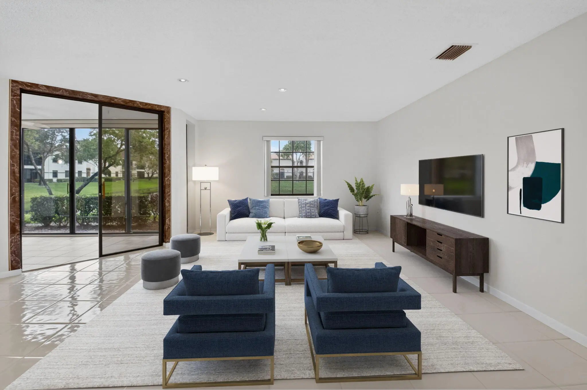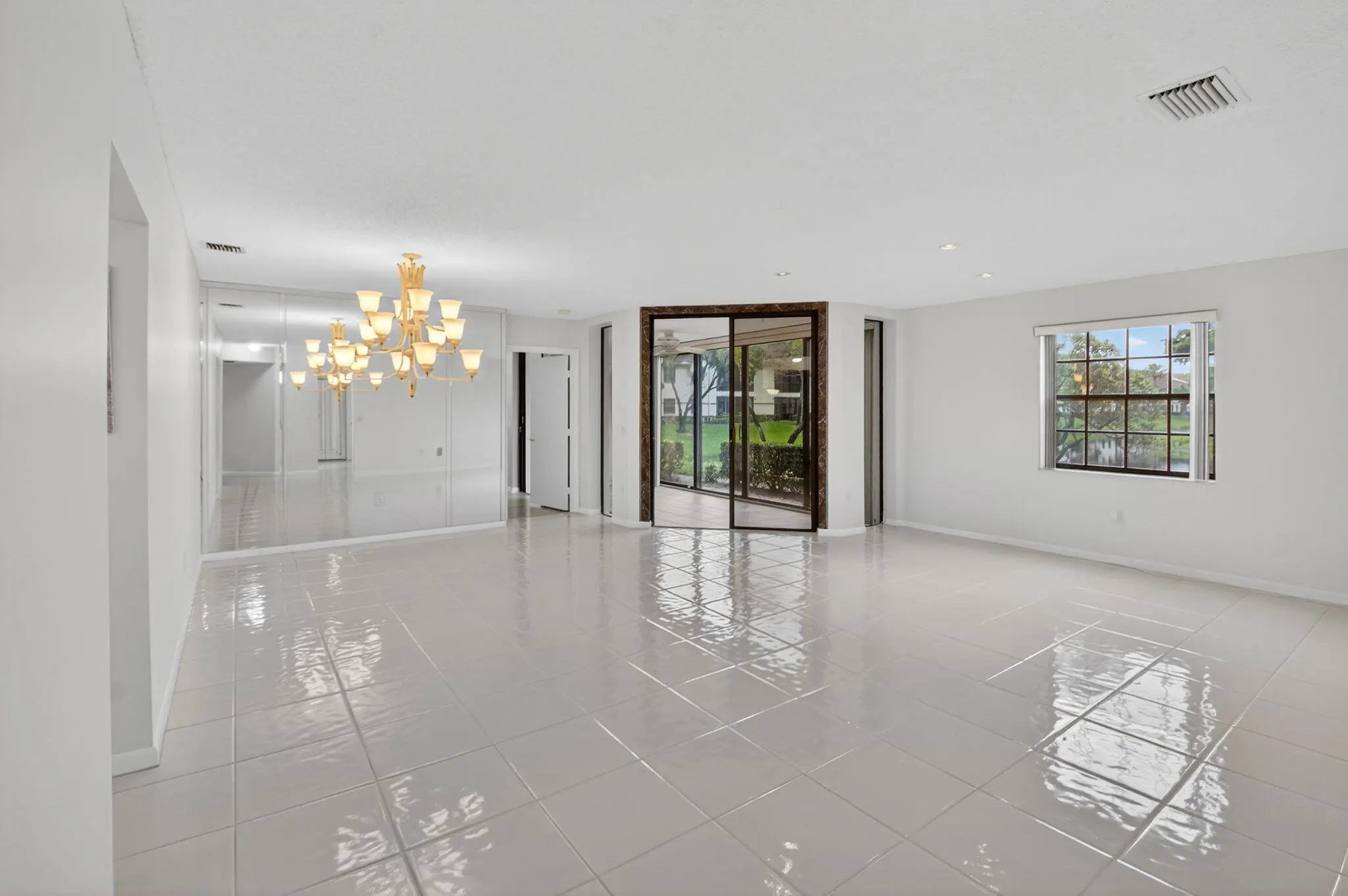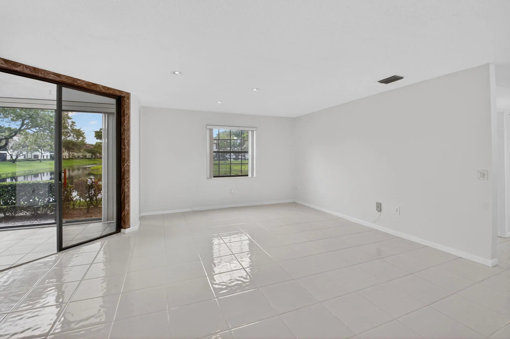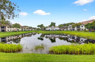 Stunning LAKE VIEWS await in this sought-after 1ST floor Grandi model 3-bedroom, 2-bathroom condo located in Platina, one of Boynton Beach's premier all-ages, resort-style communities. This freshly painted unit offers serene water views from all windows. The spacious enclosed patio, overlooking the lake, is the perfect spot to relax or enjoy your morning coffee. Recent updates include a newer air conditioner and water heater. The well-maintained kitchen features granite countertops, modern backsplash, and an eat-in kitchen. Flooring includes wood-like laminate in two bedrooms and ceramic tile throughout the living, dining, and third bedroom areas.