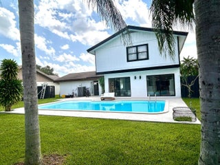**SEASONAL RENTAL** Fully furnished. Beautifully renovated 3 Bed, 2.5 bath, 2 Car Garage Pool home in Wellington. This home has been upgraded with modern elegance featuring an open concept floor plan with brand new flooring throughout. Upgraded kitchen with marble countertops that extend into a large island for extra cooking space and entertaining. A walk-in pantry has built-in shelves. The formal dining area has a wood burning fireplace. Upstairs, the primary bedroom features an extended layout with a large separate sitting area that can be used as a den, nursery or private home office, and an en-suite bathroom with modern luxurious fixtures. Spacious corner lot (.22 acres) with in-ground pool and fenced yard for added privacy and security. Lawncare, Pool, Cable, Wifi included in rent.Lawncare, Pool, Cable & Wifi included in rent.