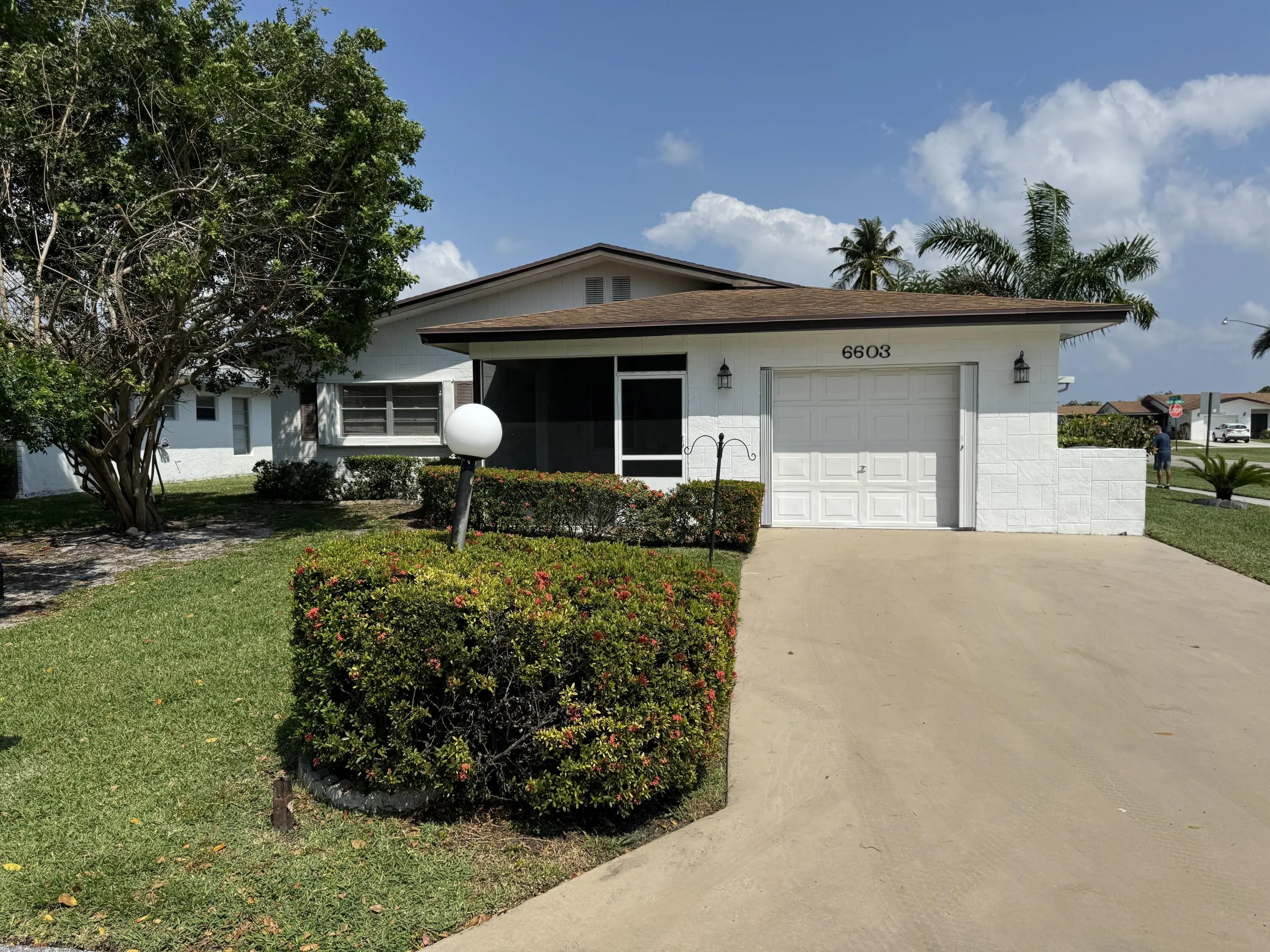 Discover this beautifully renovated Single-Family home perfectly situated on a spacious corner lot. This bright and inviting residence offers 2 bedrooms, 2 bathrooms, a 1-car garage, and two screened patios which is ideal for relaxing or entertaining. Step inside to a spacious master suite with a huge walk-in closet plus an additional closet. The stunning white kitchen features modern appliances and sleek quartz countertops. Both bathrooms have been completely remodeled with new cabinetry, stylish fixtures, and contemporary showers. A full-size washer and dryer add everyday convenience. Residents of Delray Villas enjoy resort-style amenities, including Bocce, Horseshoes, Pickleball, and Tennis Courts, along with a large heated swimming and lap pool. Stay active in the co-ed gym,
