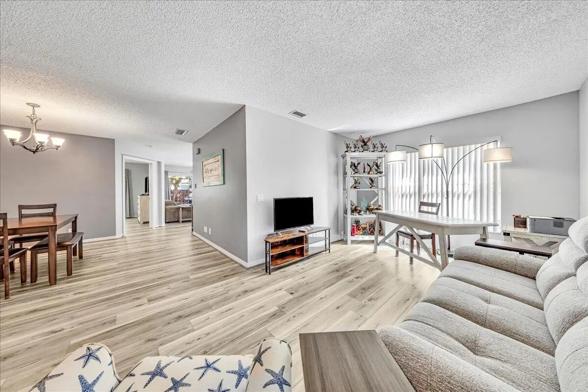 Beautiful 3 bedroom, 2.5 bath with 2-car garage located on a corner lot in the gated community of Harbor Island in Turtle Run. This recently painted home has tile and engineered laminate throughout the main floor. The first-floor primary bedroom and newly renovated bath with twin sink consoles, large walk-in shower, large walk-in closet has glass doors to the back patio. There are two bedrooms and an updated bathroom, and washer and dryer upstairs. Quaint fenced-in backyard with patio and fruit trees. The A/C is 2017 and W/H is 2025. Harbor Island is a pet-friendly, gated community with a pool and playground and is centrally located to shoppes, entertainment, restaurants and close to 441 and Turnpike. This home is a MUST SEE!! LOW HOA!!!